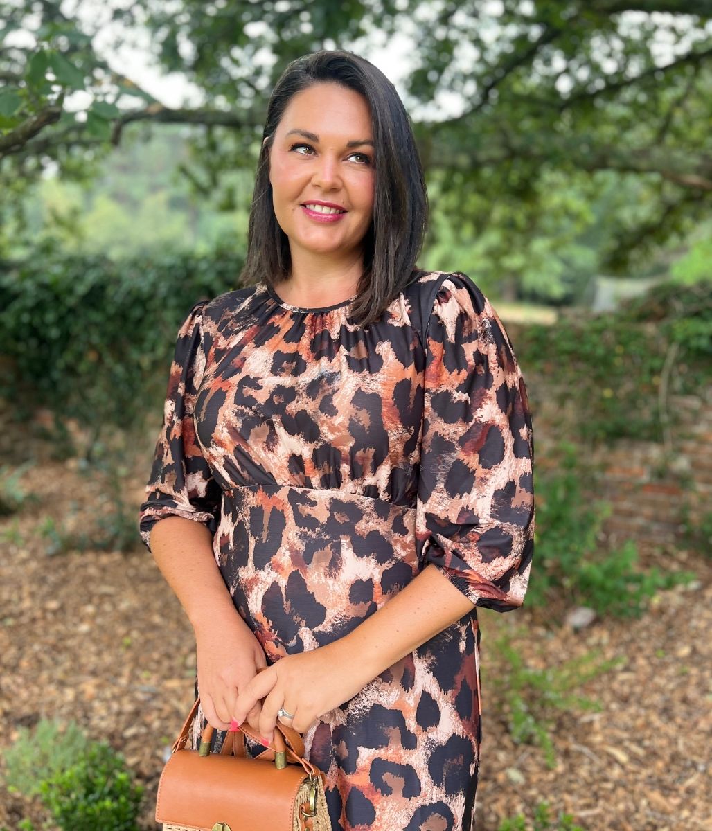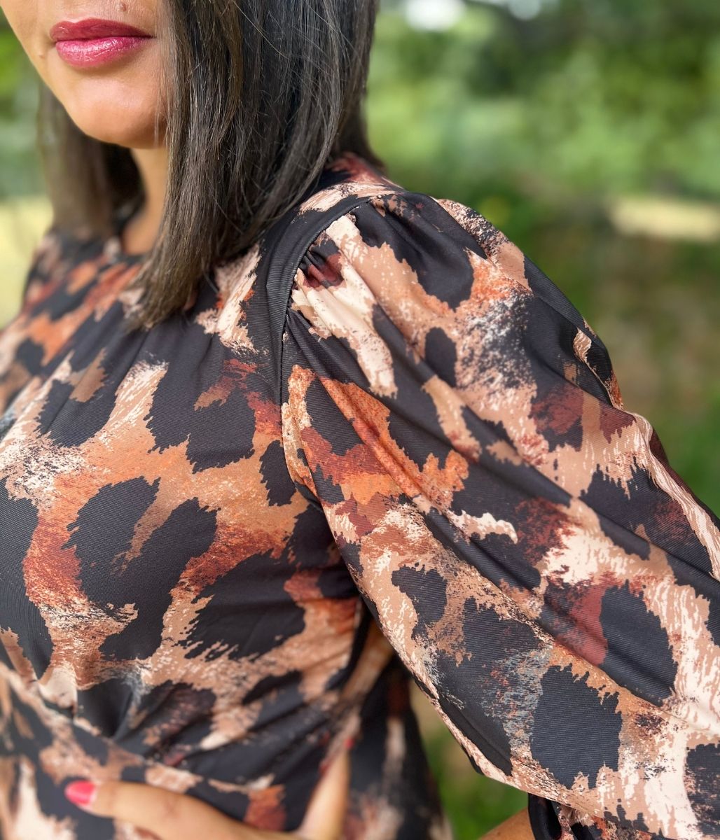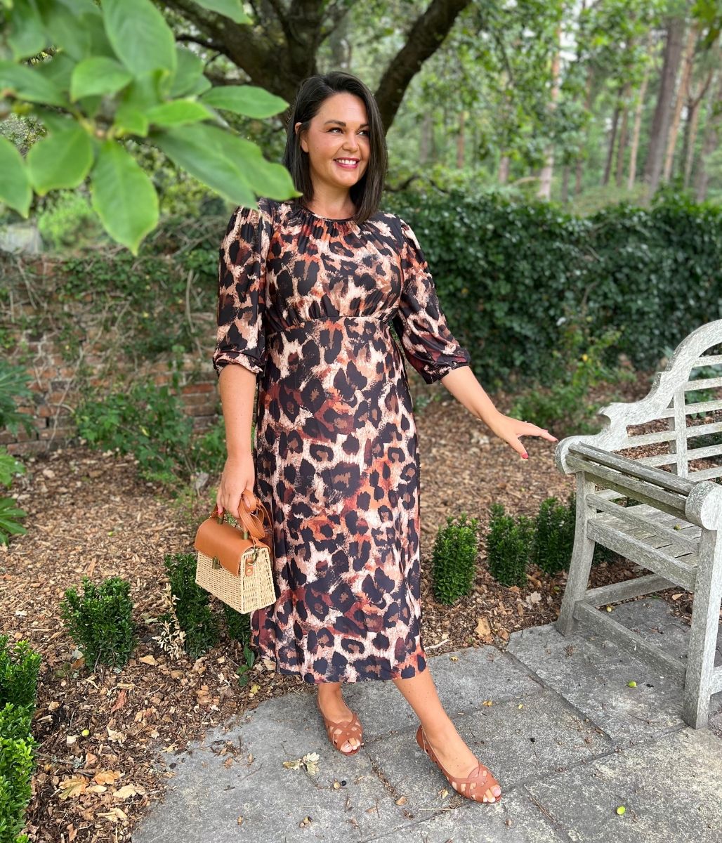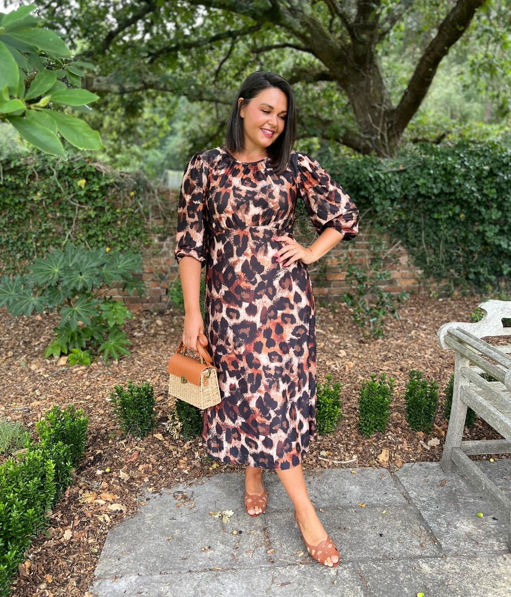 Add a touch of wild to your wardrobe with this animal print midi dress. Crafted from a comfortable stretch jersey fabric, this dress features a classic round neckline and 3/4 sleeves, finishing elegantly at midi length. The gathered waist style ensures a flattering fit that enhances your curves beautifully. Pair with your favourite winter boots, tights, and coat for a fierce and stylish Autumn look!