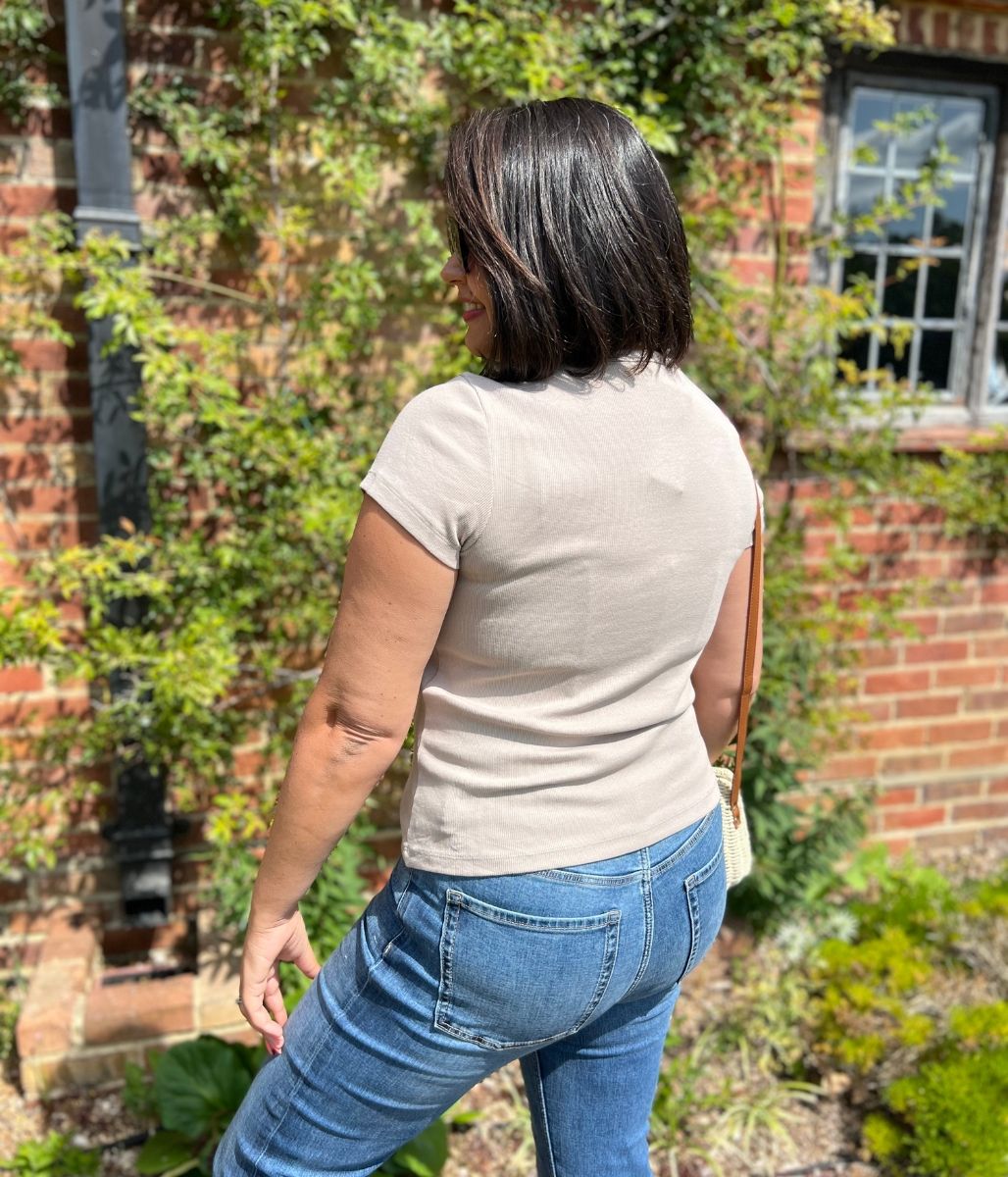 This cotton-rich ribbed t-shirt is cut in a flattering slim fit, with added stretch for comfort. Complete with a neat crew neckline and comfy short sleeves.