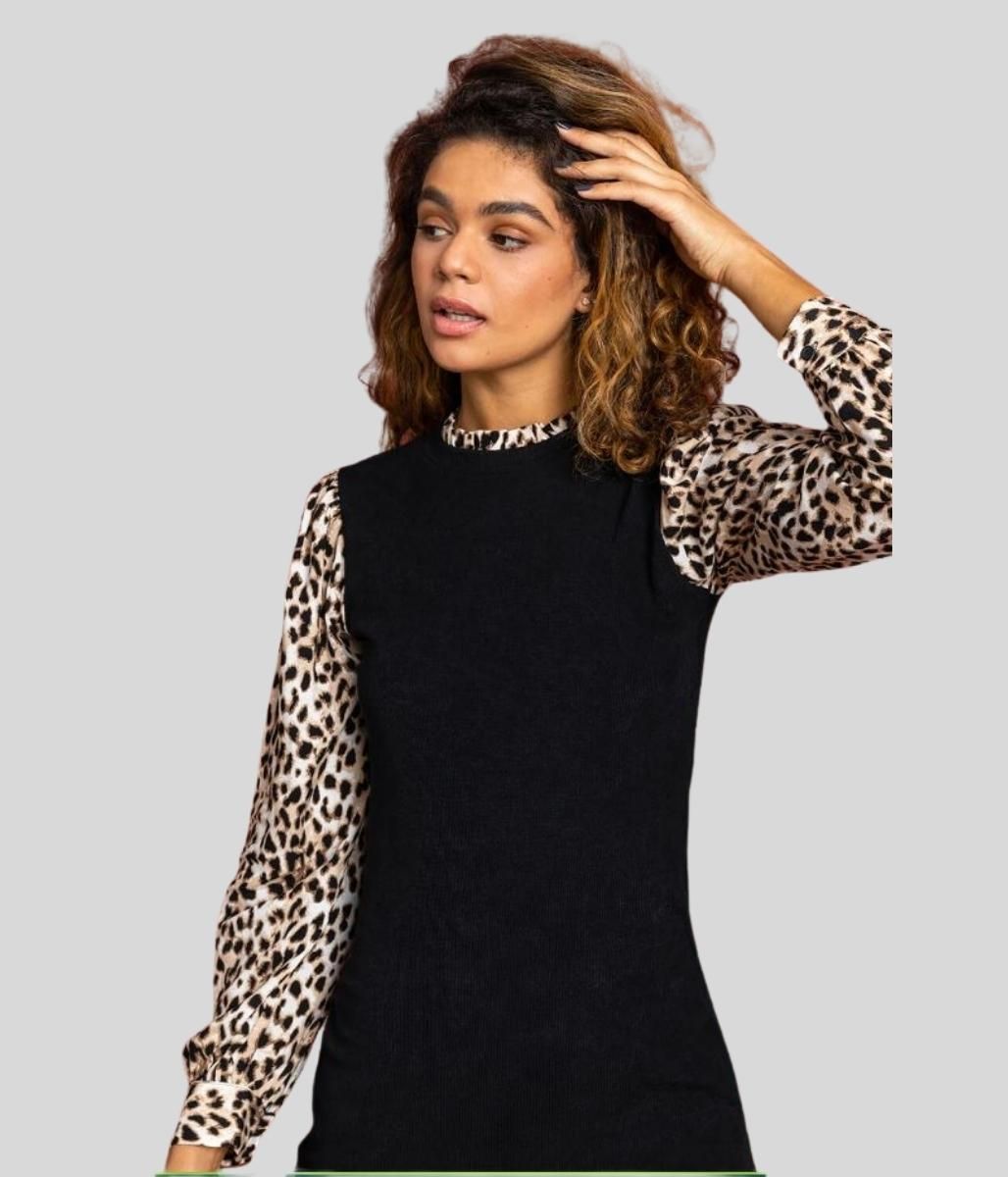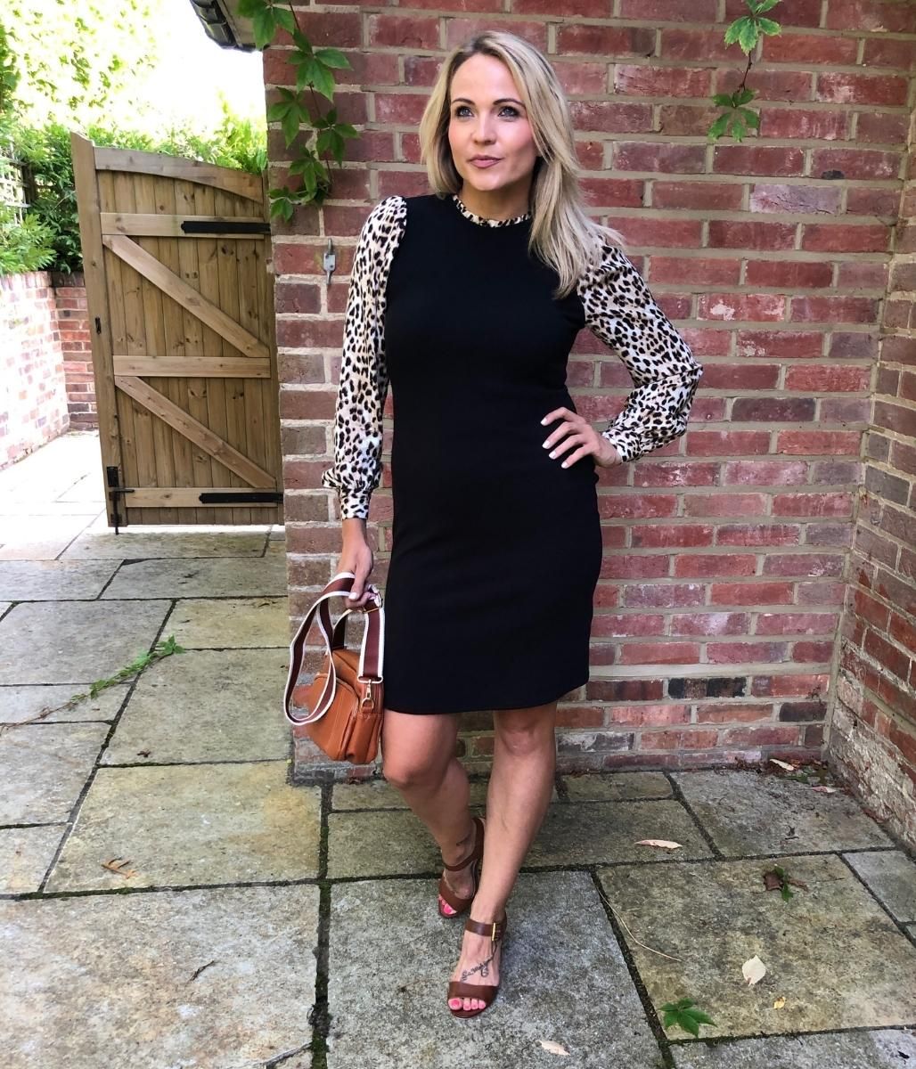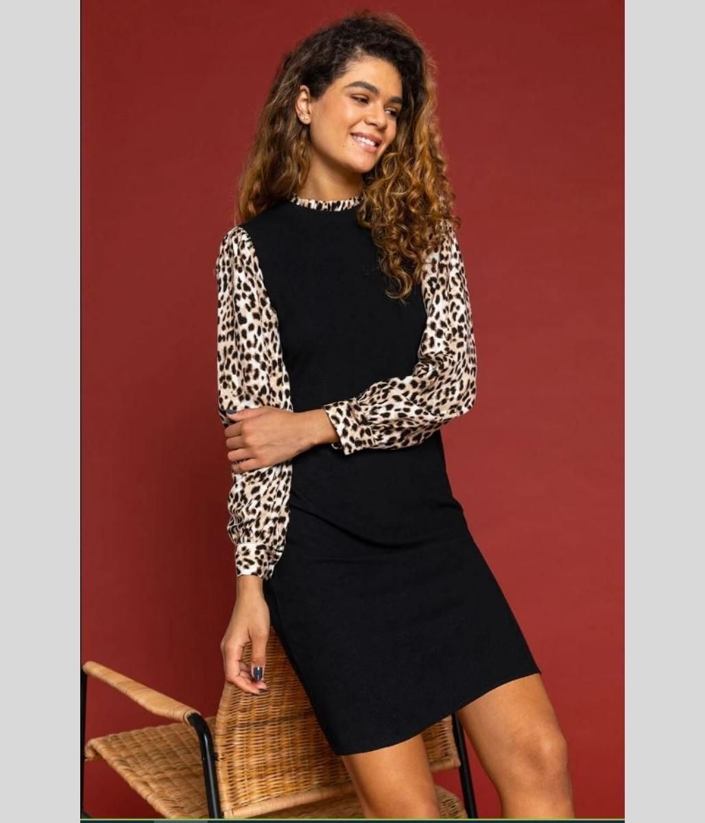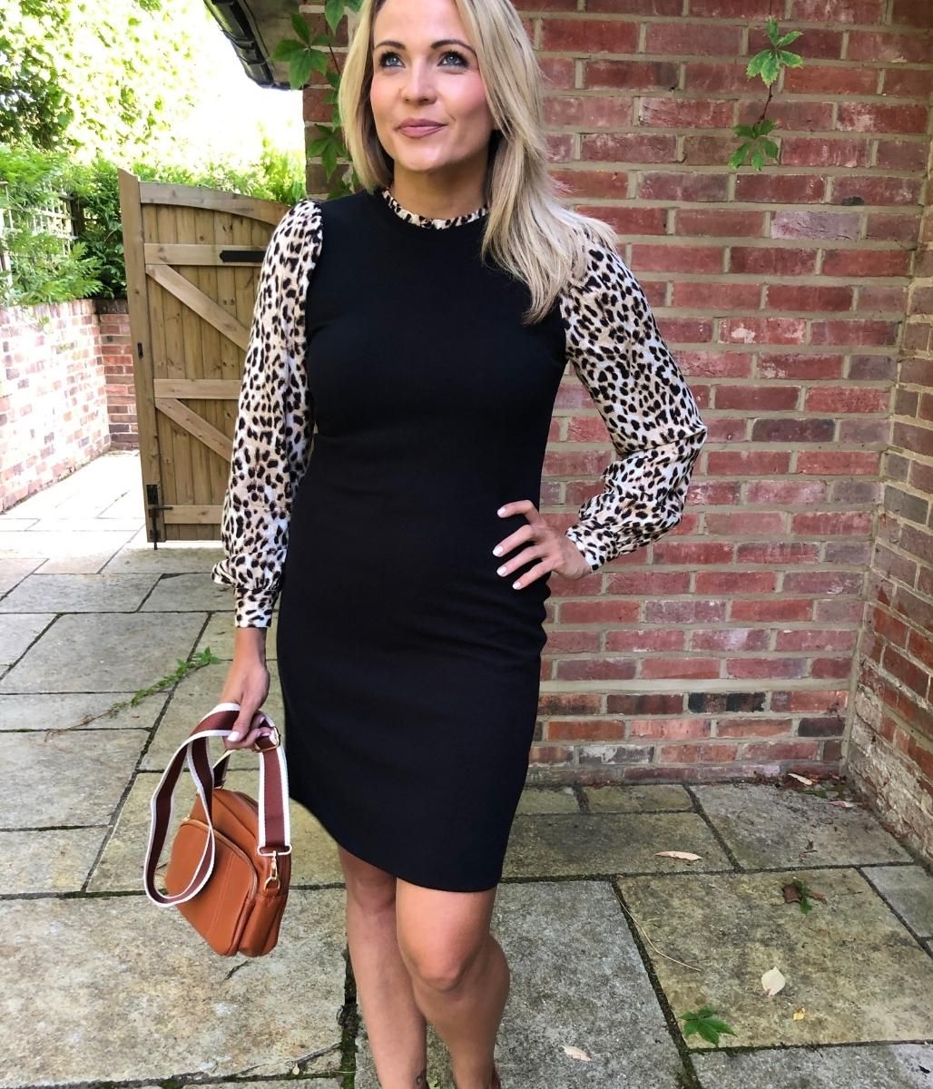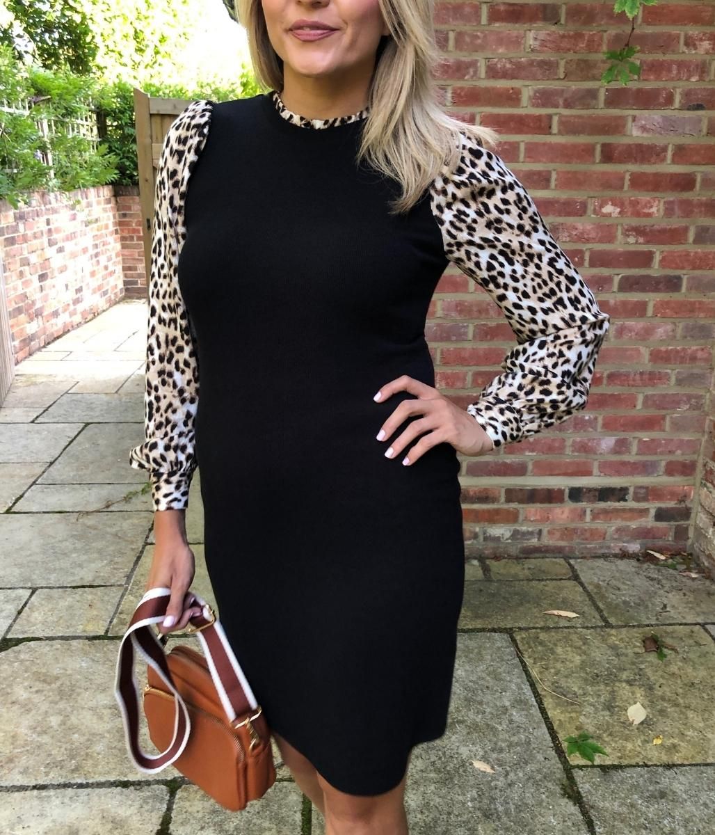 Black Leopard Sleeve Contrast Dress 18 20