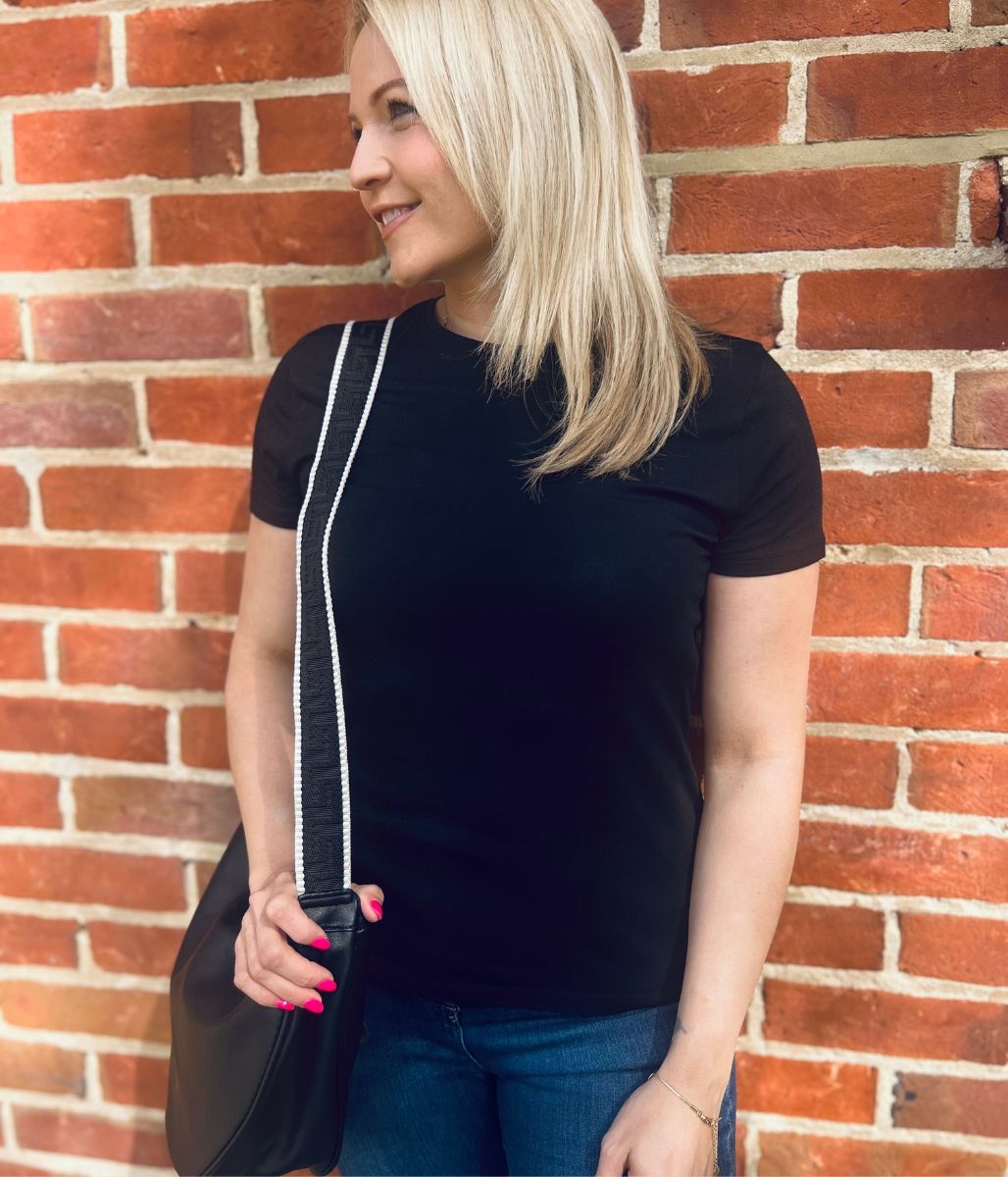 Made in a cotton-rich fabric with a touch of stretch, this round neck t-shirt with short sleeves is a wardrobe essential. In a fitted shape, it is ideal for layering as well as wearing alone.