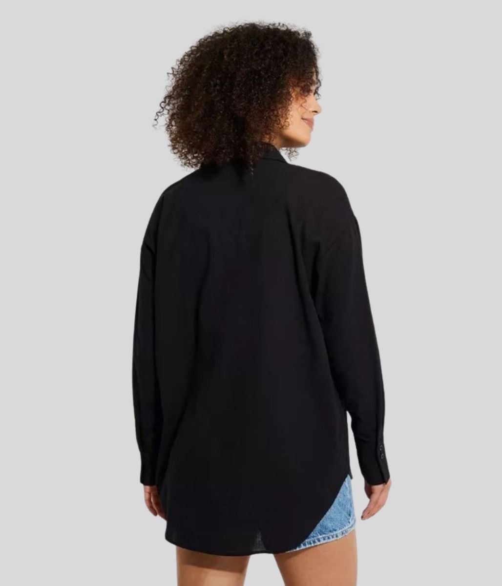 Perfect for the summer months but also all year round, this linen look shirt has a longline feel with a button fastening, open collar and chest pocket
