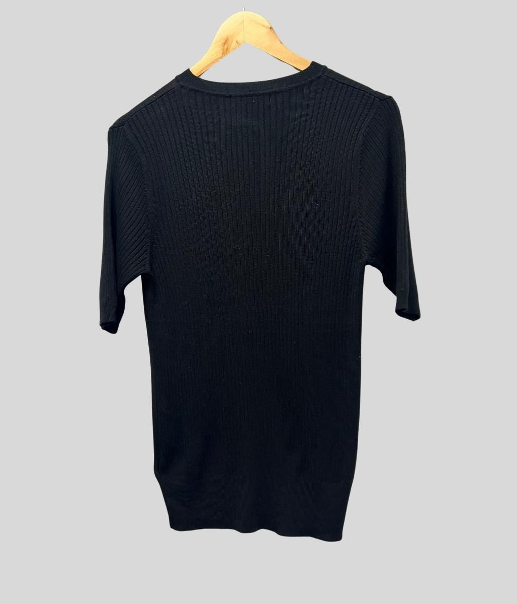 This short-sleeved jumper offers a sunny take on knitwear. Ribbed viscose-rich fabric has a lots of stretch for a comfortable fit. Designed in a slim fit with ribbed stretchy fabric so you can move easily.