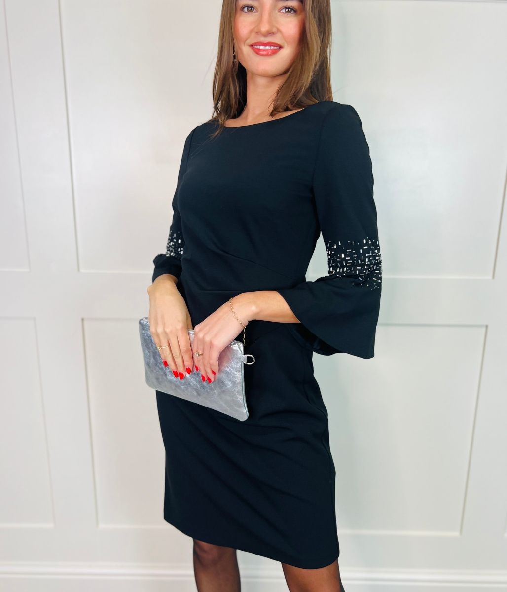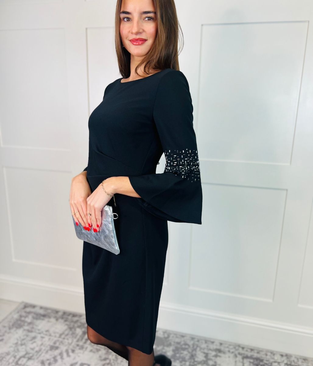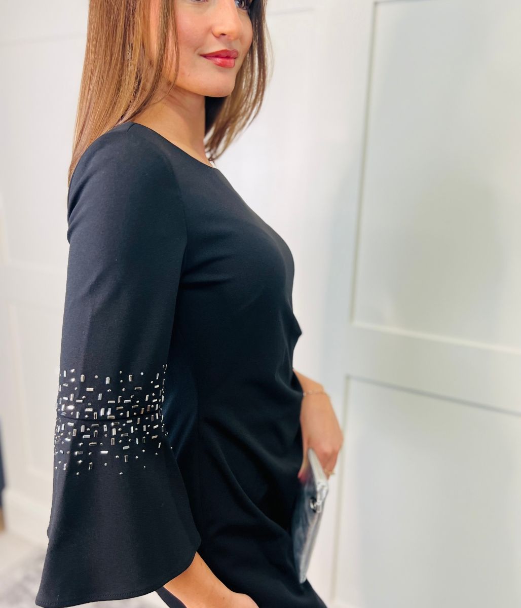 Black Studded Bell Sleeve Dress