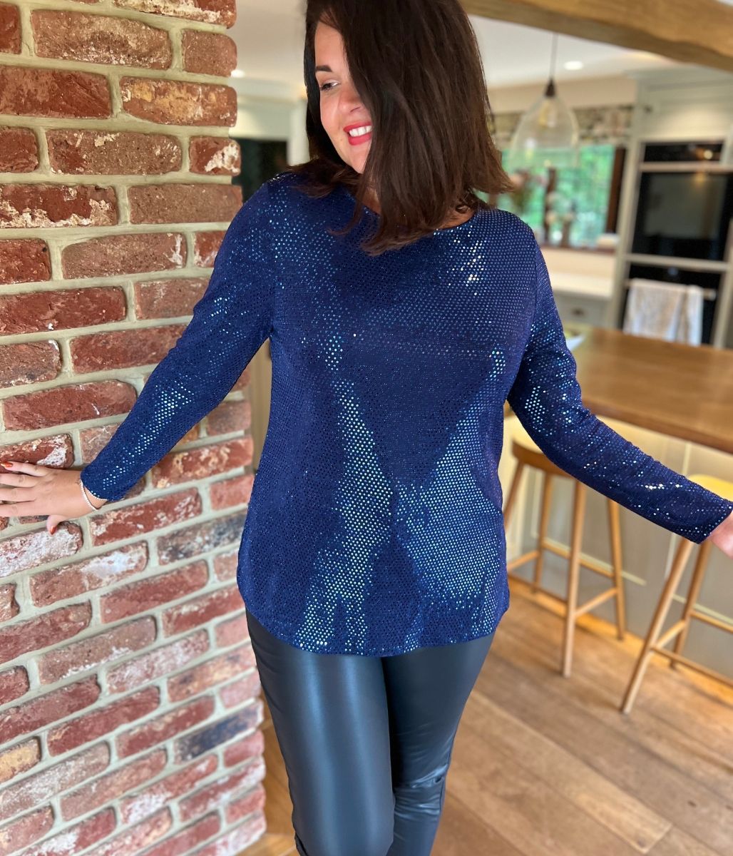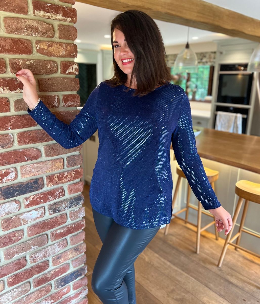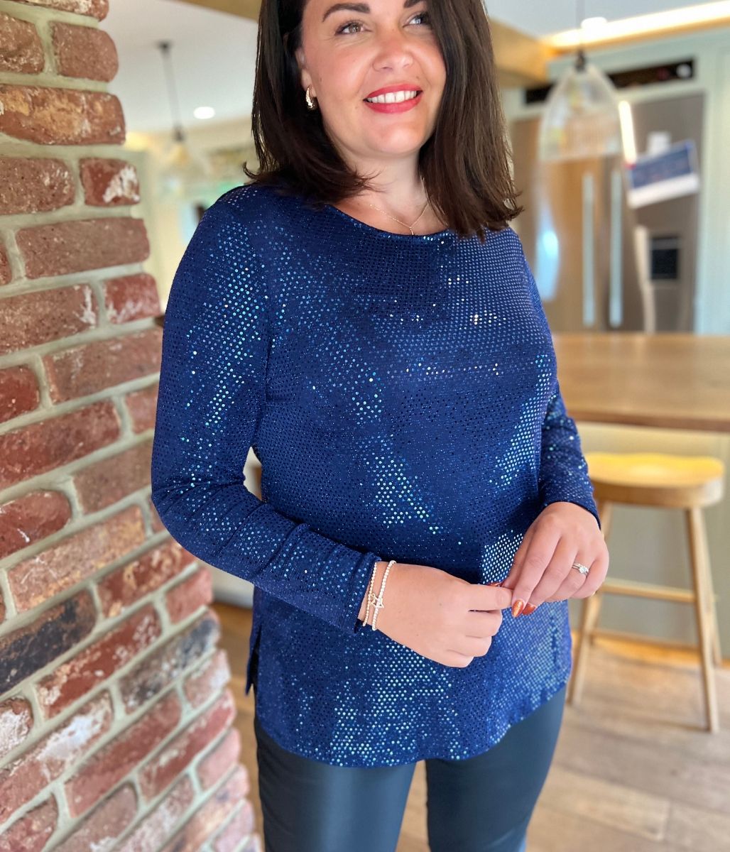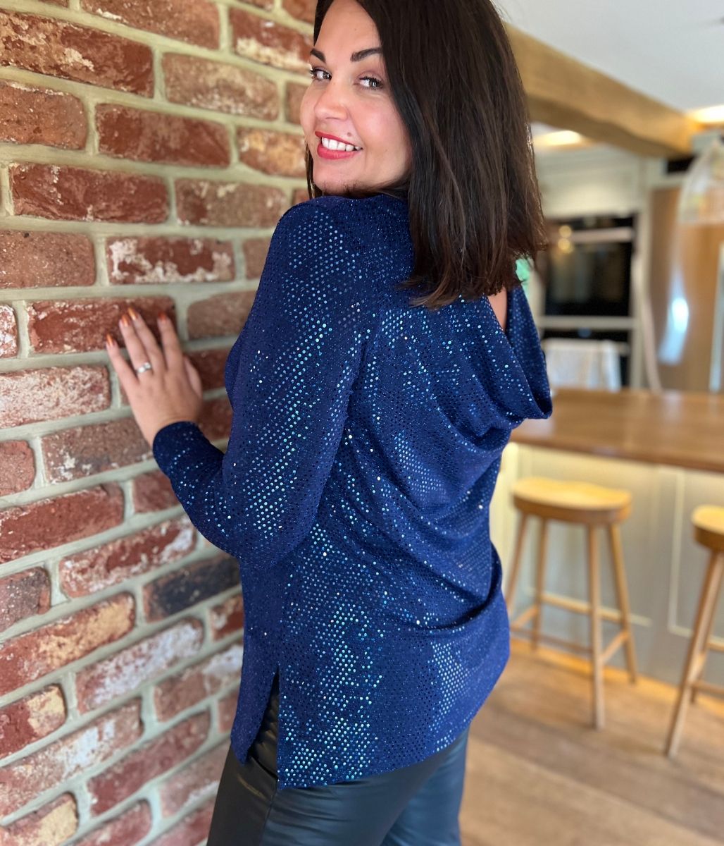 Add some sparkle to your wardrobe! The sparkle detail adds a touch of glamour, complemented by the unique cowl back design. Featuring long sleeves to keep you warm, a classic round neckline, and a tunic shape, this top is cut from a comfortable stretch jersey fabric for easy wear. Ideal for your next special occasion, simply style with wide-leg trousers and heeled boots for a complete look!