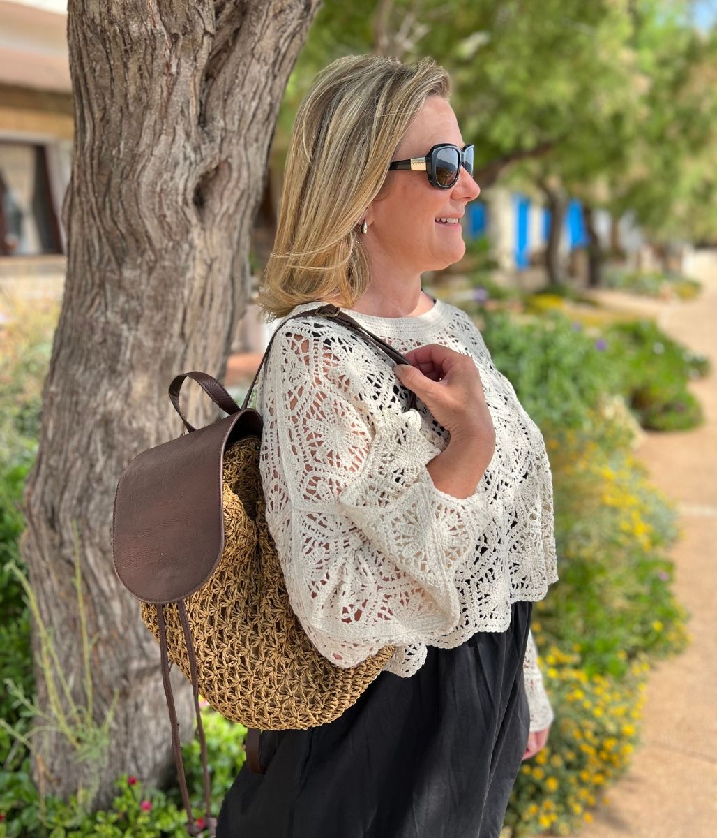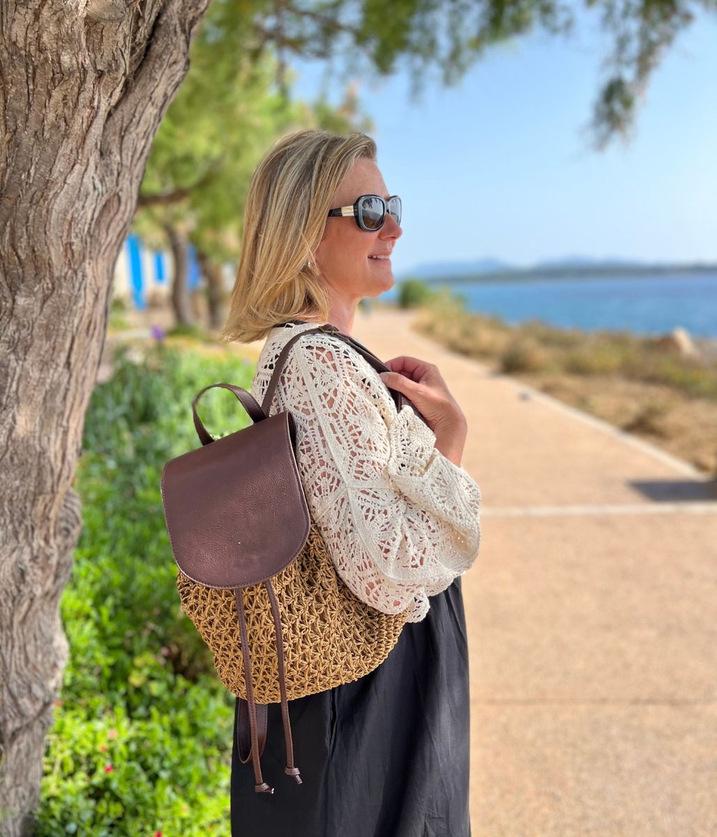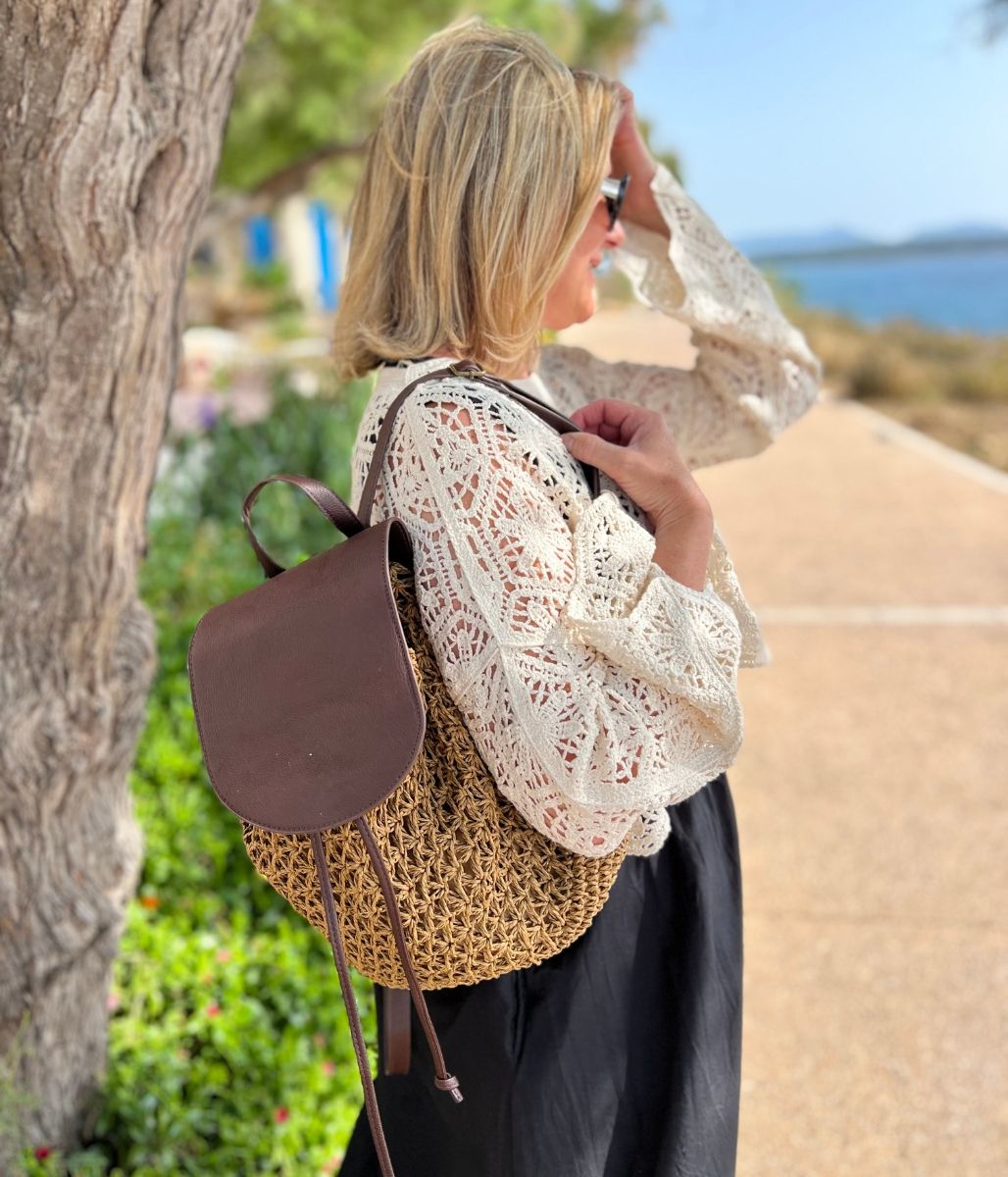 The Mila straw backpack is the ideal accessory for sunny beach days and tropical escapes. Crafted from durable high-quality straw in elegant brown and beige tones, it combines retro charm with practical design. The spacious interior easily holds towels, sunscreen, snacks, and more, while sturdy handles and a secure closure keep your essentials safe and comfortable to carry. Stylish and functional, this backpack is your perfect summer companion.
