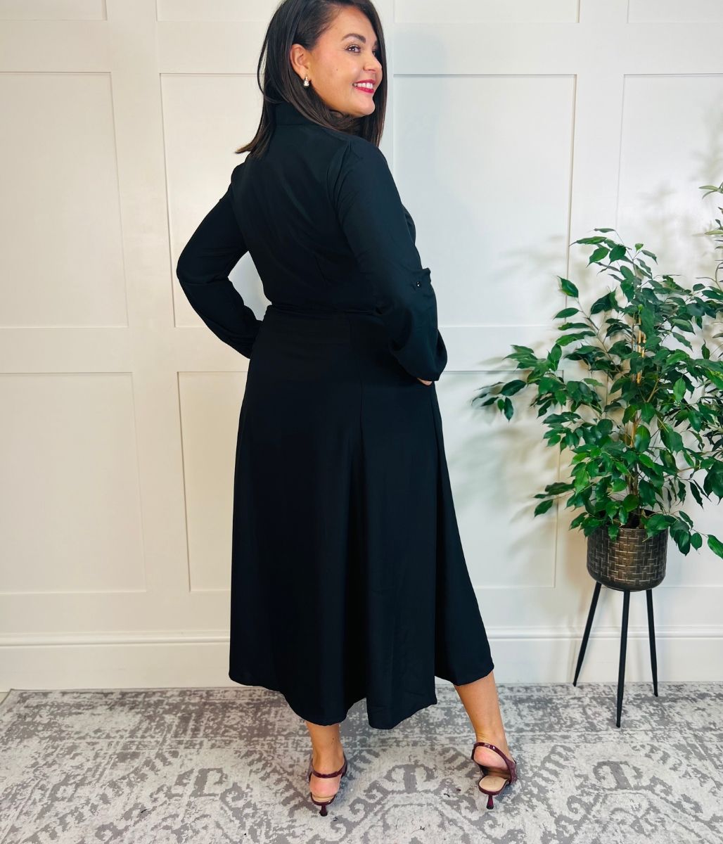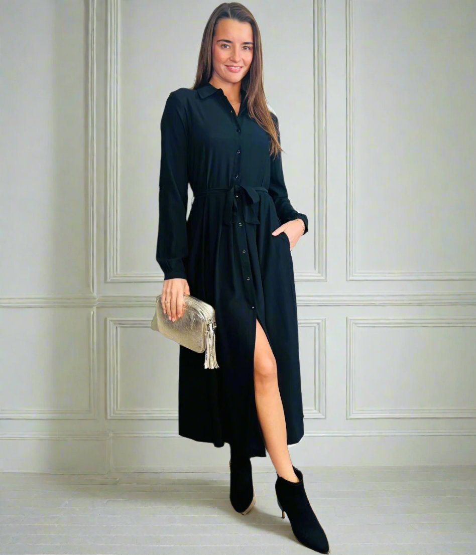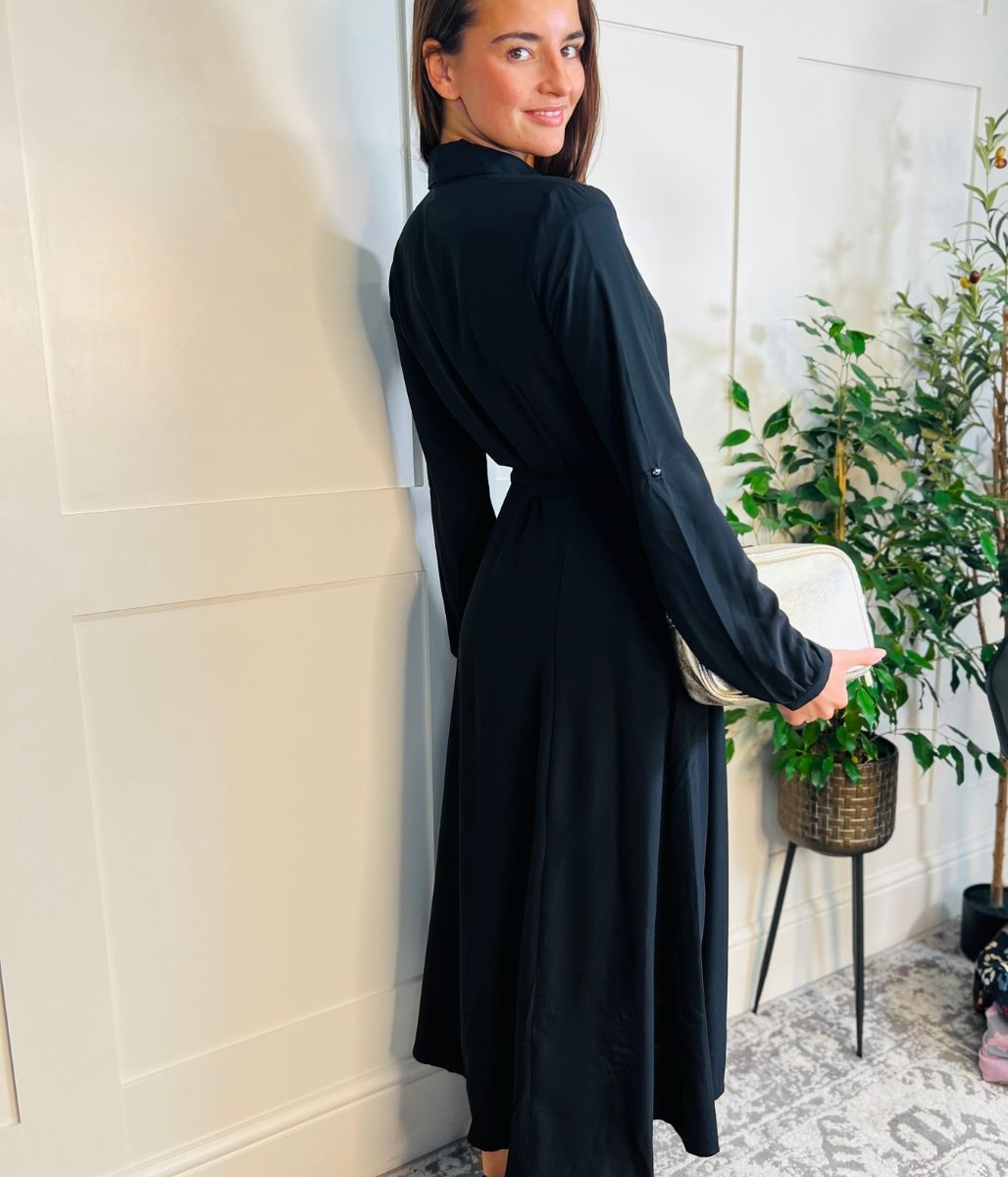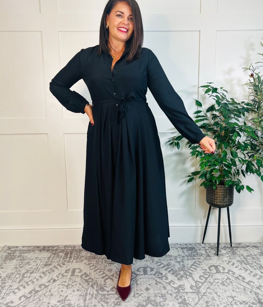 Add a touch of sophistication to your wardrobe with this stylish midi dress. Boasting a button front placket, this midi dress features a collared neckline and long sleeves which are smart for any occasion. Designed in a flattering midi length, this statement piece includes a detachable self fabric tie belt for a custom fit.