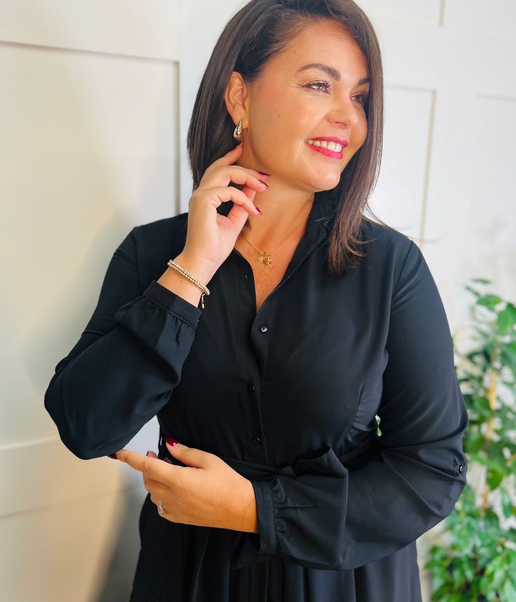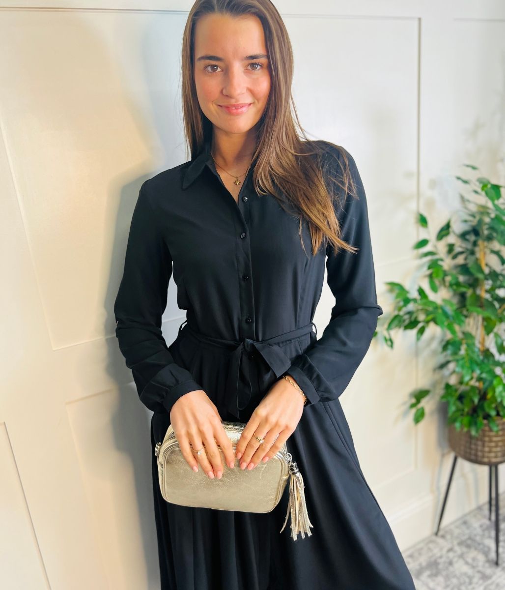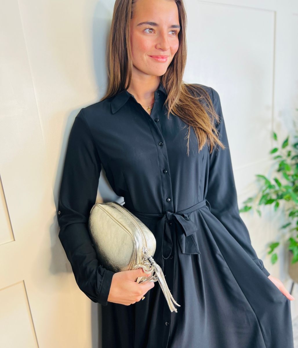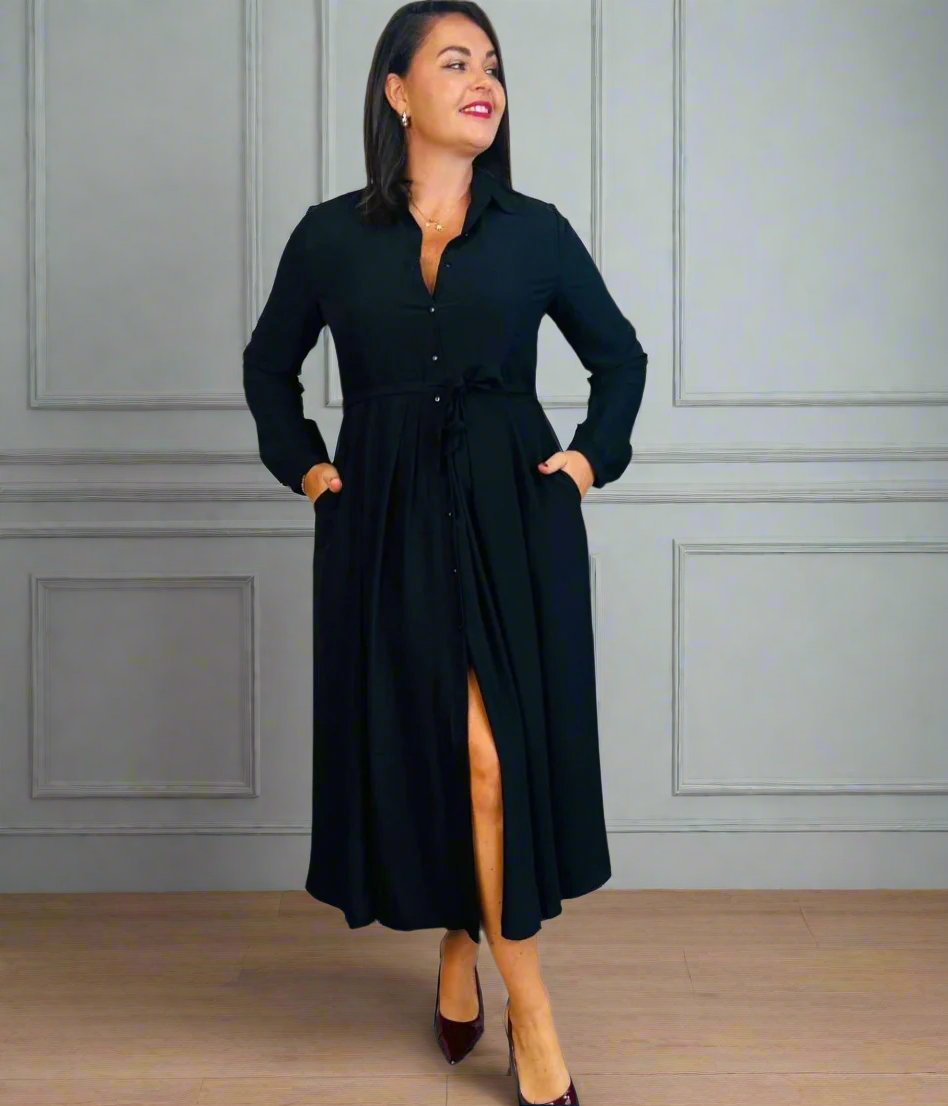 Add a touch of sophistication to your wardrobe with this stylish midi dress. Boasting a button front placket, this midi dress features a collared neckline and long sleeves which are smart for any occasion. Designed in a flattering midi length, this statement piece includes a detachable self fabric tie belt for a custom fit.