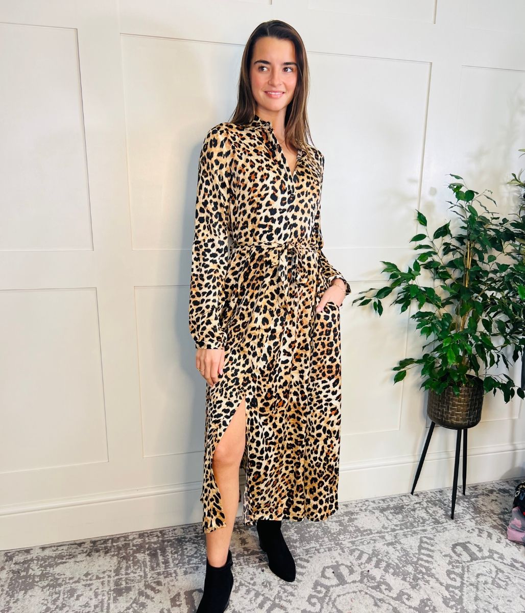 Add a touch of sophistication to your wardrobe with this stylish midi dress. Boasting a button front placket, this midi dress features a collared neckline and long sleeves which are smart for any occasion. Designed in a flattering midi length, this statement piece includes a detachable self fabric tie belt for a custom fit.