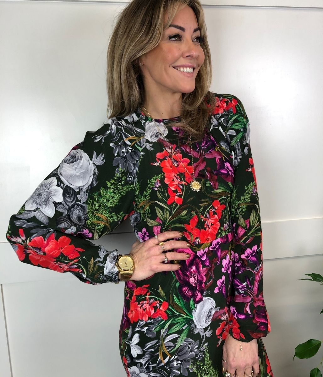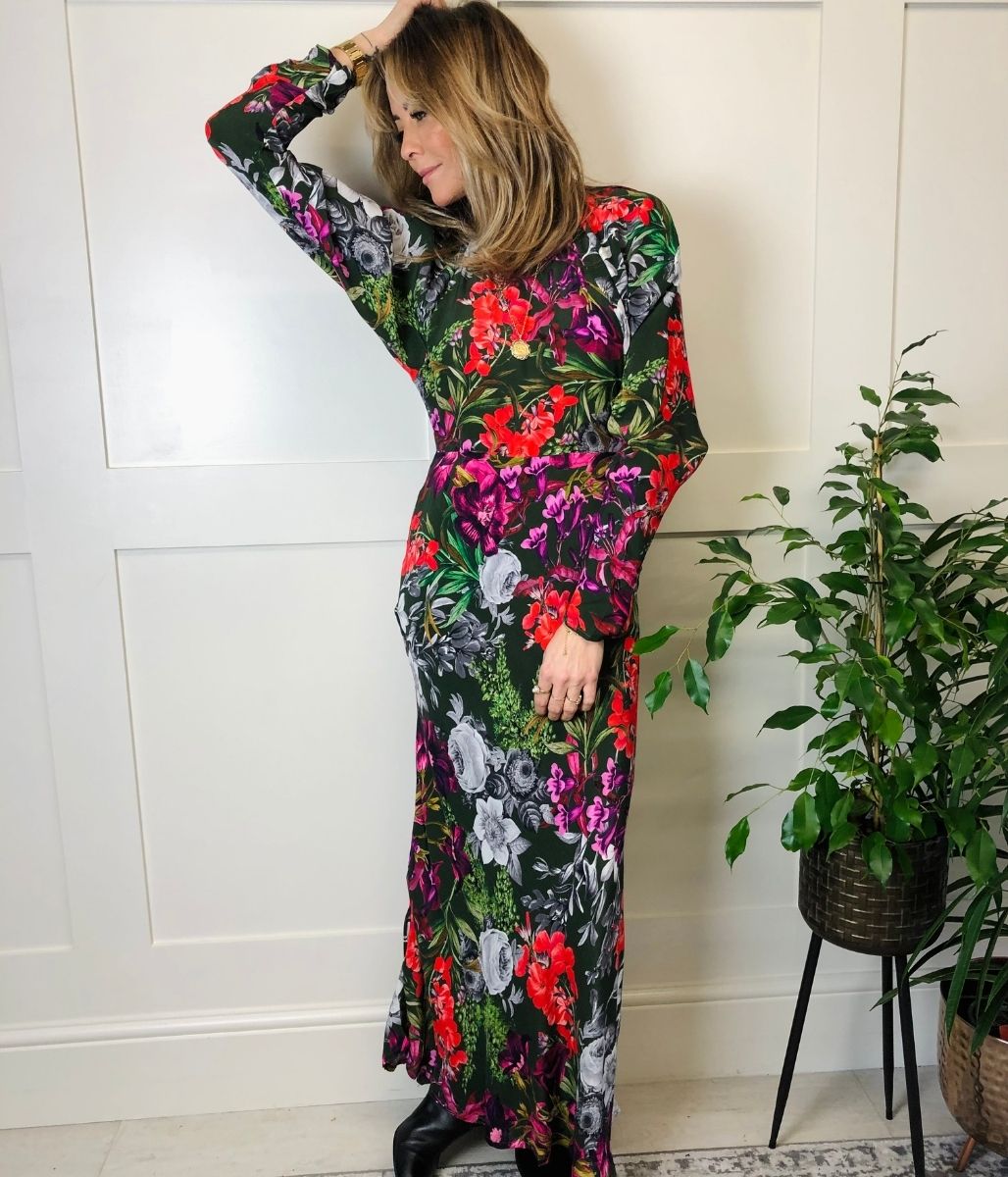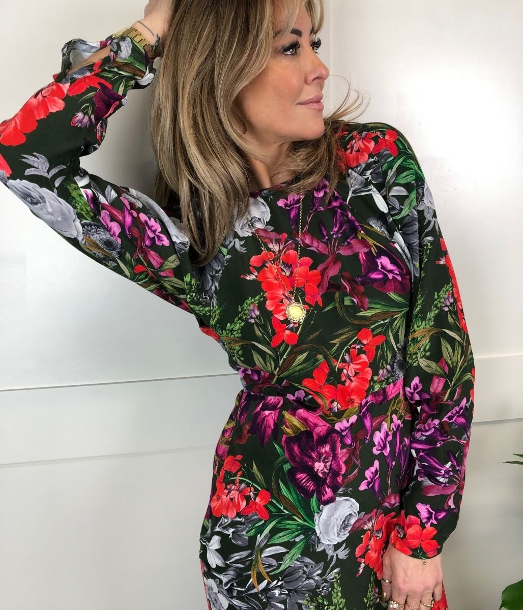 Timeless silhouettes and vibrant hues are created with this dress, crafted from viscose fabric and adorned with a garden floral print for an artful touch. A midi length with long batwing long sleeves add optimal coverage in cooler seasons. A round neck frames the neck delicately, with a waist seam and A-line skirt for a flattering silhouette.