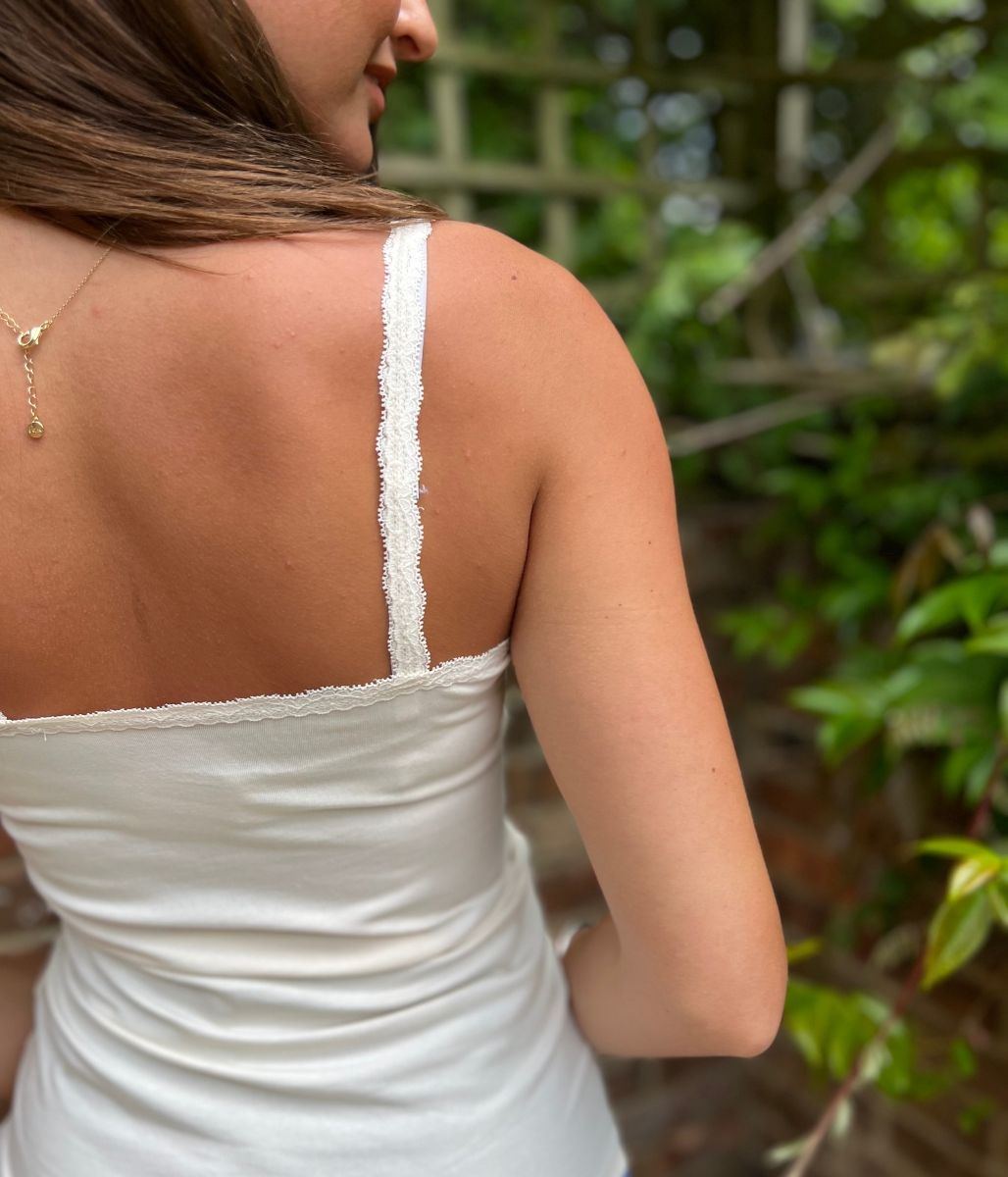 Crafted from a cotton-rich fabric with added stretch, this cami top offers a comfortable, flexible fit that moves with you. Delicate lace trims add a subtle feminine detail, making it perfect for layering or wearing on its own for a chic, effortless look.