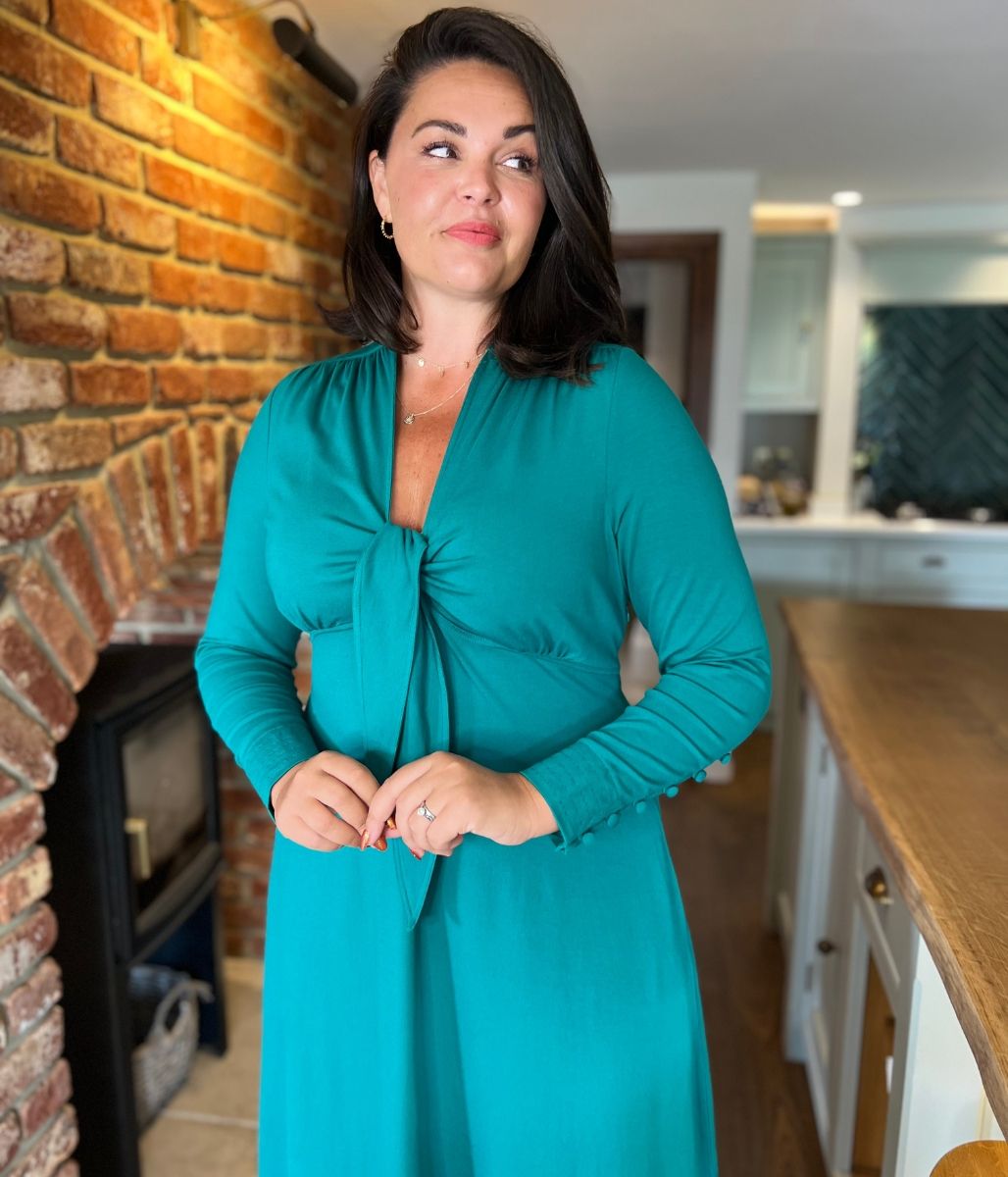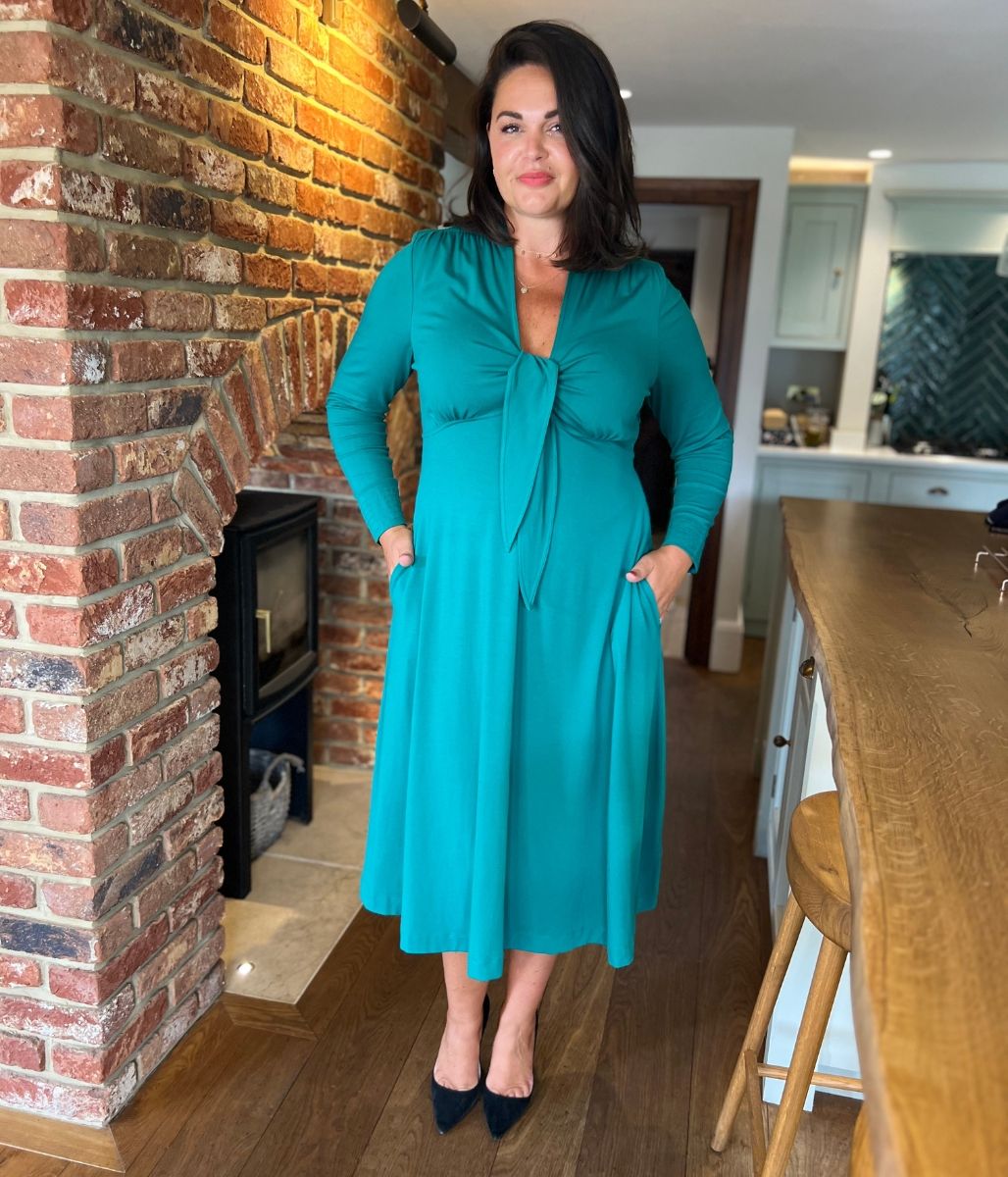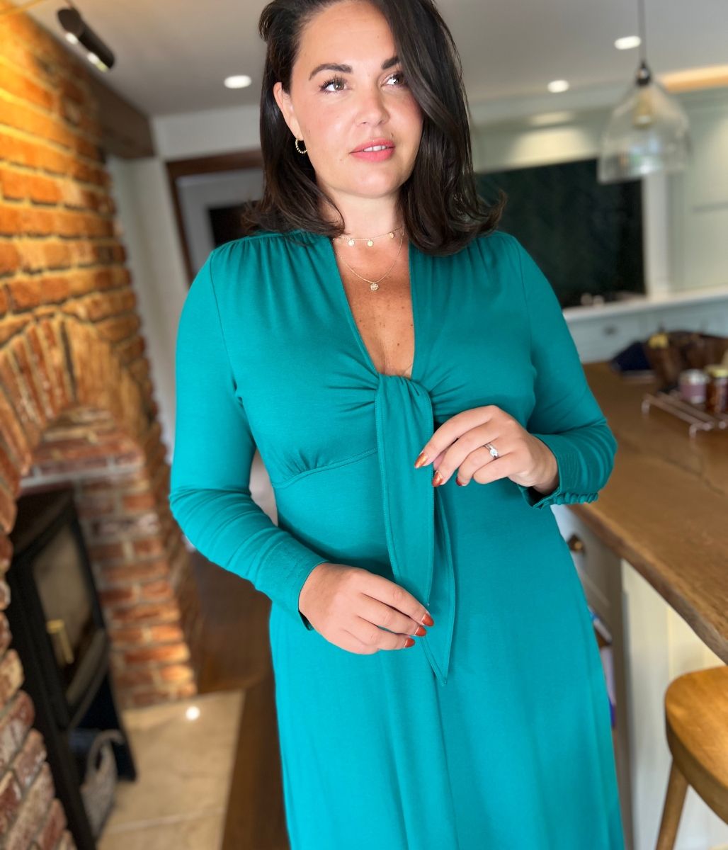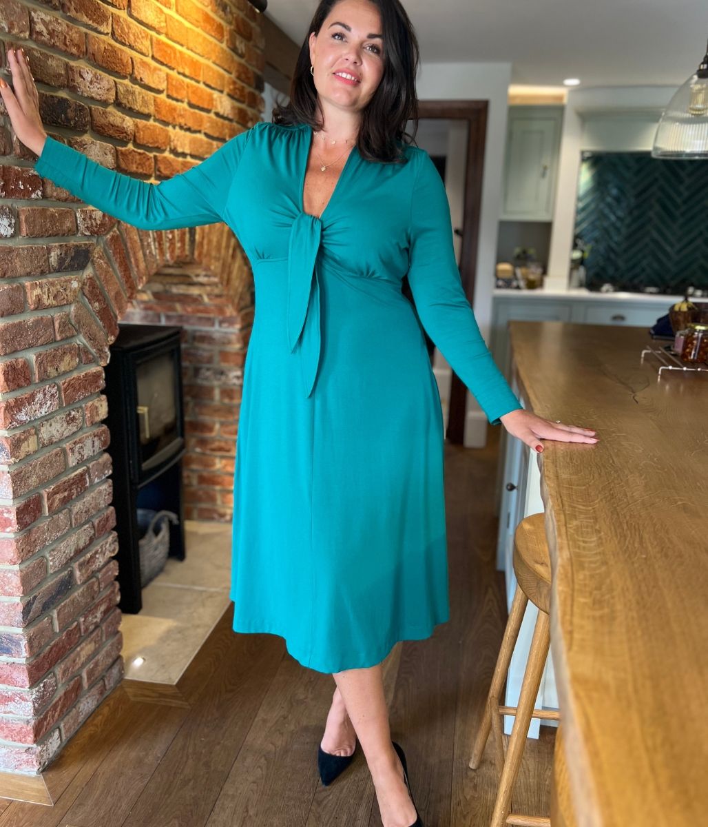 Emerald Green Tie Front Midi Dress