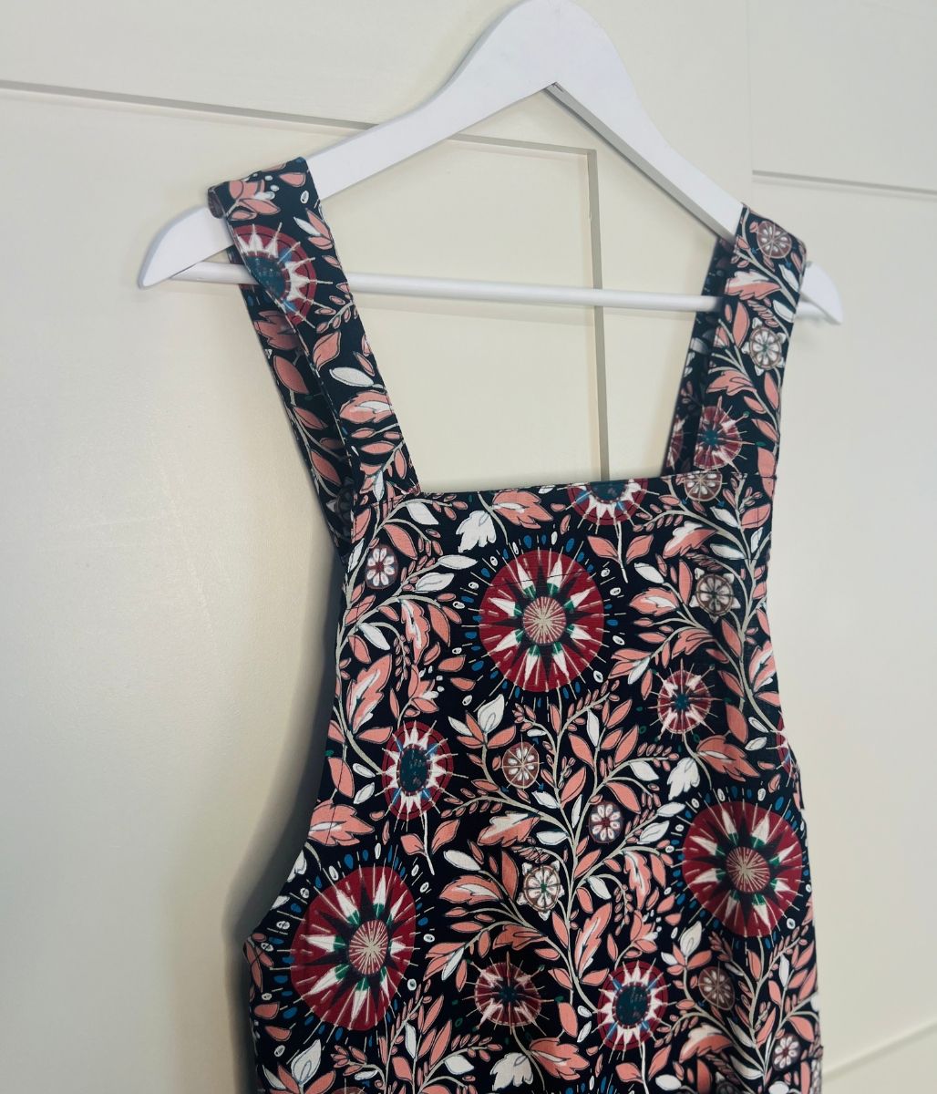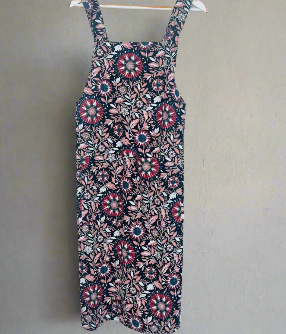 A printed apron that's ideal for crafts and cooks, with a handy, easy-fitting cross-back design and no fiddly ties. Throw it on over clothes to protect them from spills and splashes.