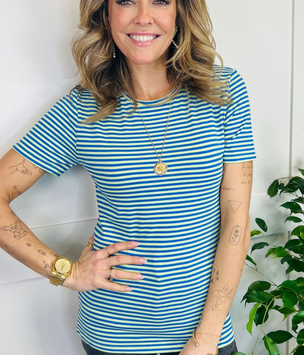 Bring a nautical feel to your casualwear with this striped cotton-rich t-shirt. Slim fit design for a flattering silhouette. Crew neck and breezy short sleeves deliver a classic look.