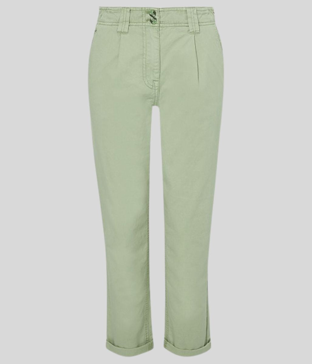 These cotton chinos feature an easy comfortable shape. The flattering straight-leg shape is perfect through the week and weekend, and elastication in the waist promises all-day comfort. Finished with a zip fly and button-fastening waist, pockets to the sides and back plus belt loops, they’ll quickly become style essentials.