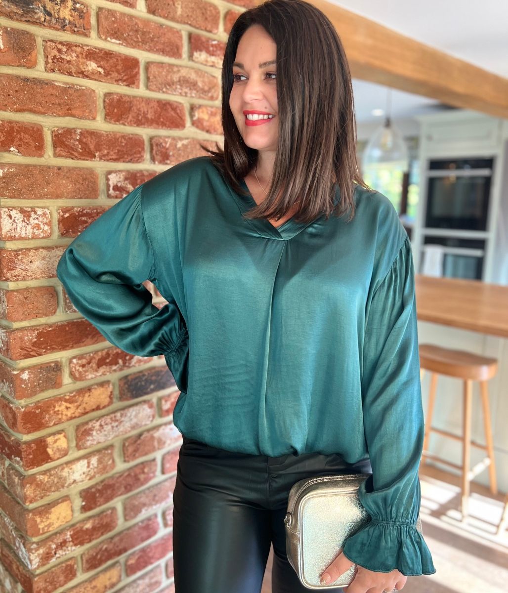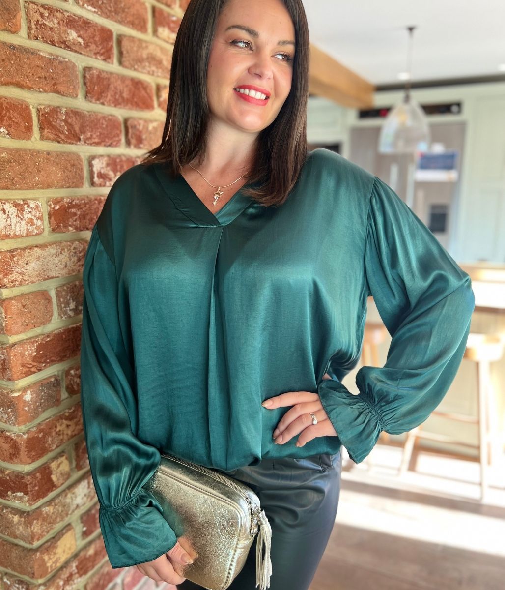 Green Satin Popover Top