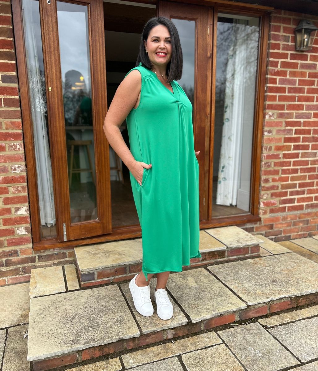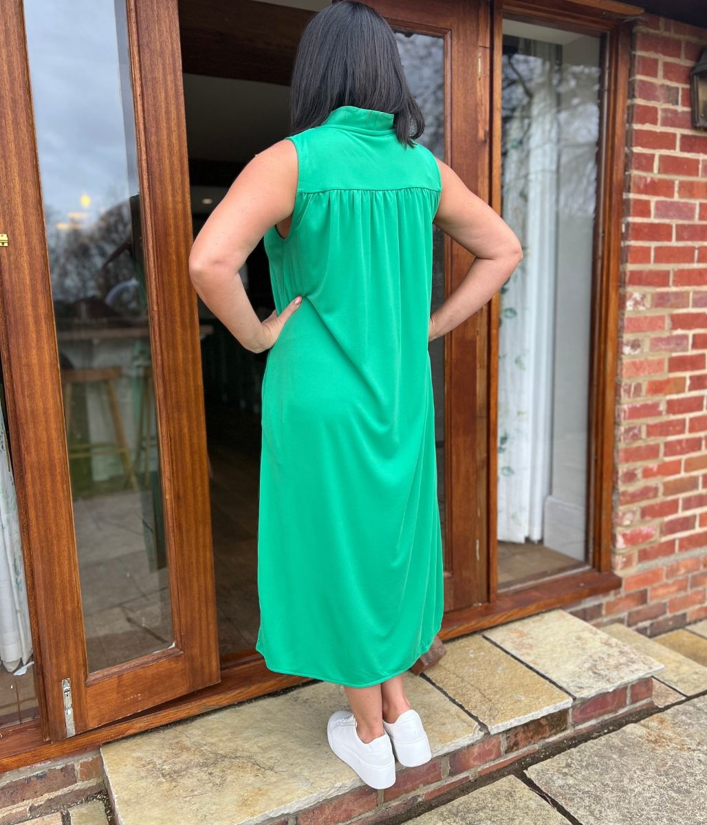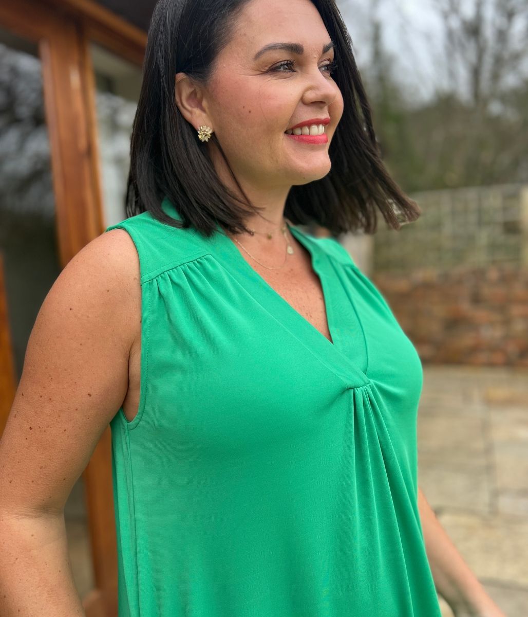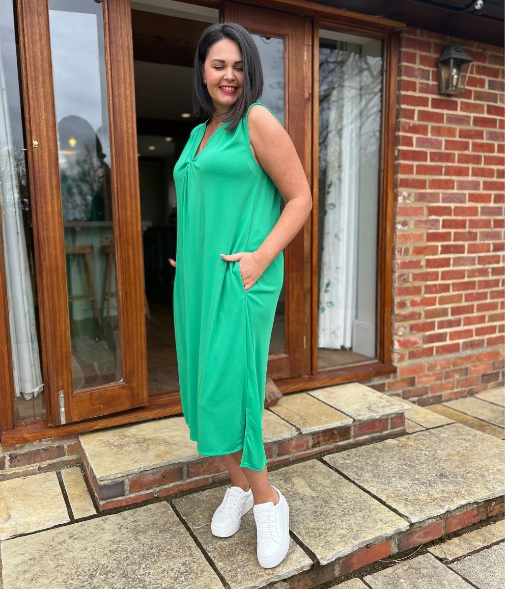 Keeping things simple in a shift silhouette, this midi dress is in need of no fussy details or prints to catch the eye. With a flattering v neckline and a sleeveless design, the pleated detail at the shoulders add extra depth too. So comfortable for all day style.