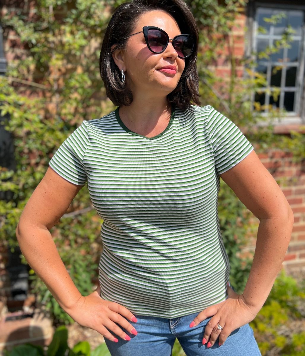 This cotton-rich ribbed t-shirt features a timeless striped design. It's cut in a flattering slim fit, with added stretch for comfort. Complete with a neat crew neckline and comfy short sleeves.