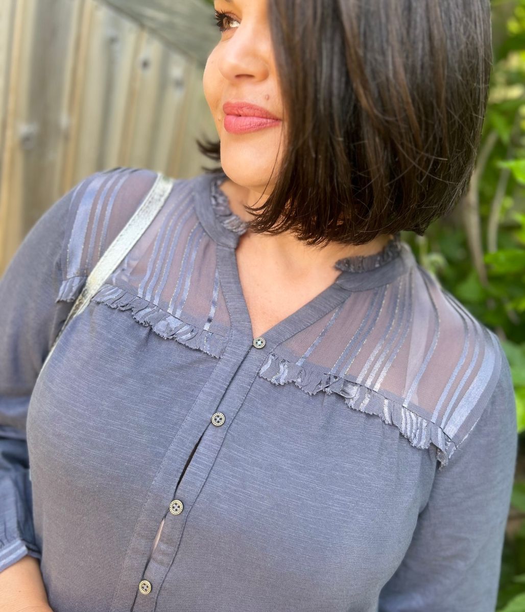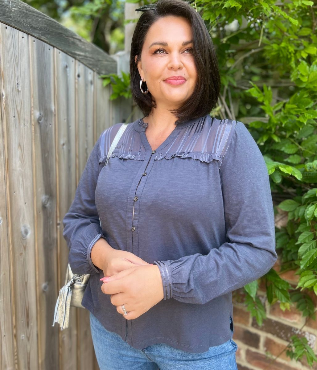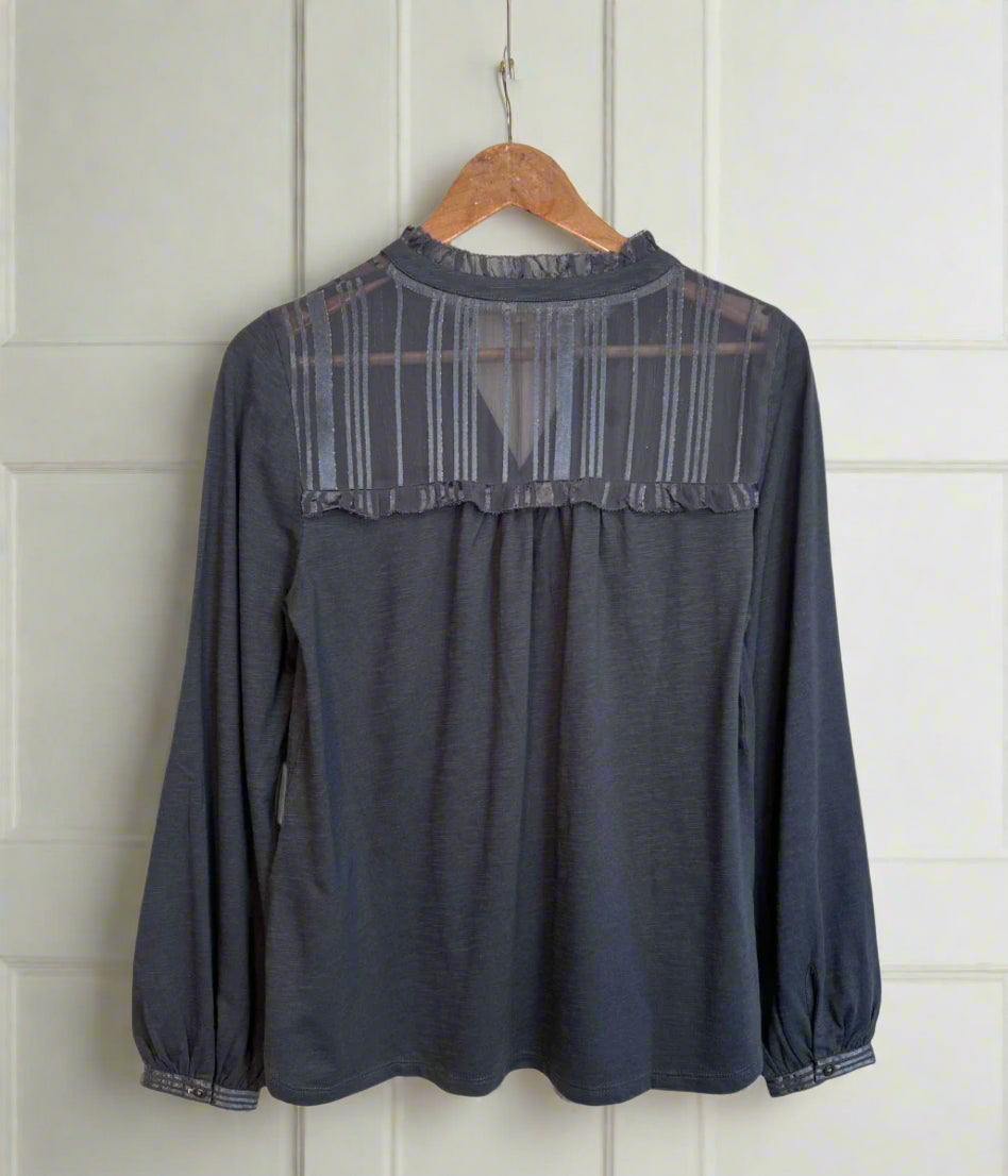 Grey Contrast Jersey Blouse