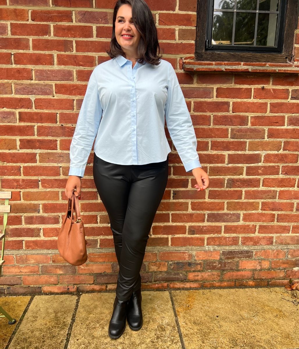 Update your collection of smart staples with this long-sleeved cotton-rich shirt. Cut to a flattering fitted shape, with added stretch so you can move comfortably. Classic tailored details include a button-through fastening and a crisp collared neck