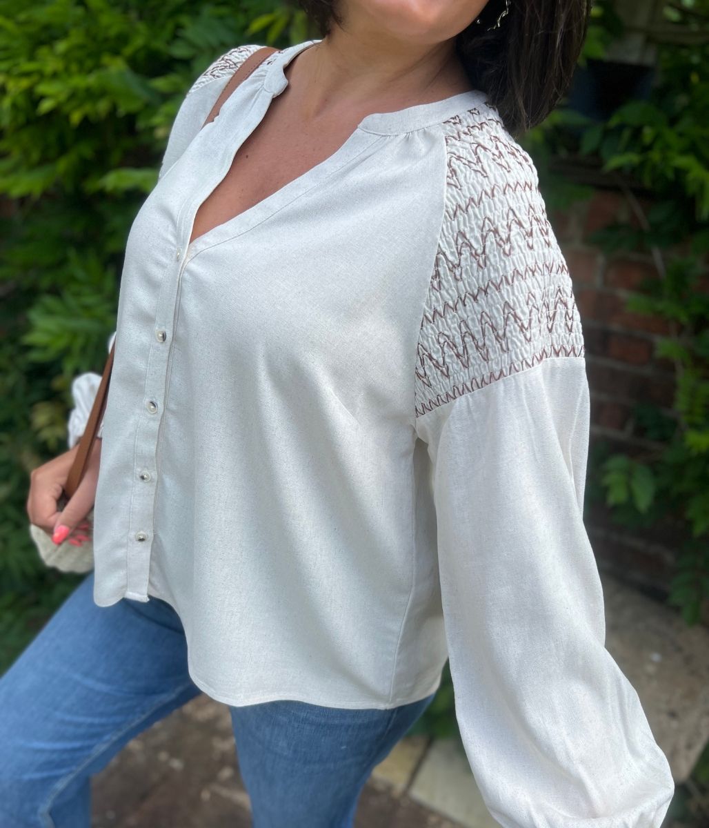Natural Linen Blend Blouse