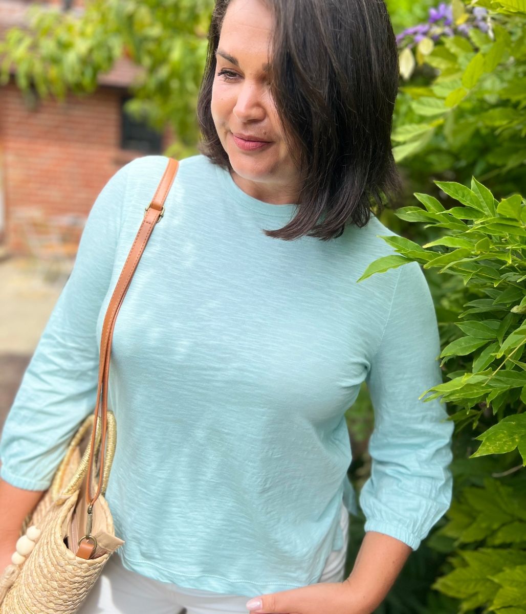 Featuring a relaxed fit, ¾ sleeves with elasticated cuffs, and side slits finished with woven herringbone trim, this top offers comfort and style. Perfect for any occasion, pair it with your favourite jeans for a chic and effortless look.