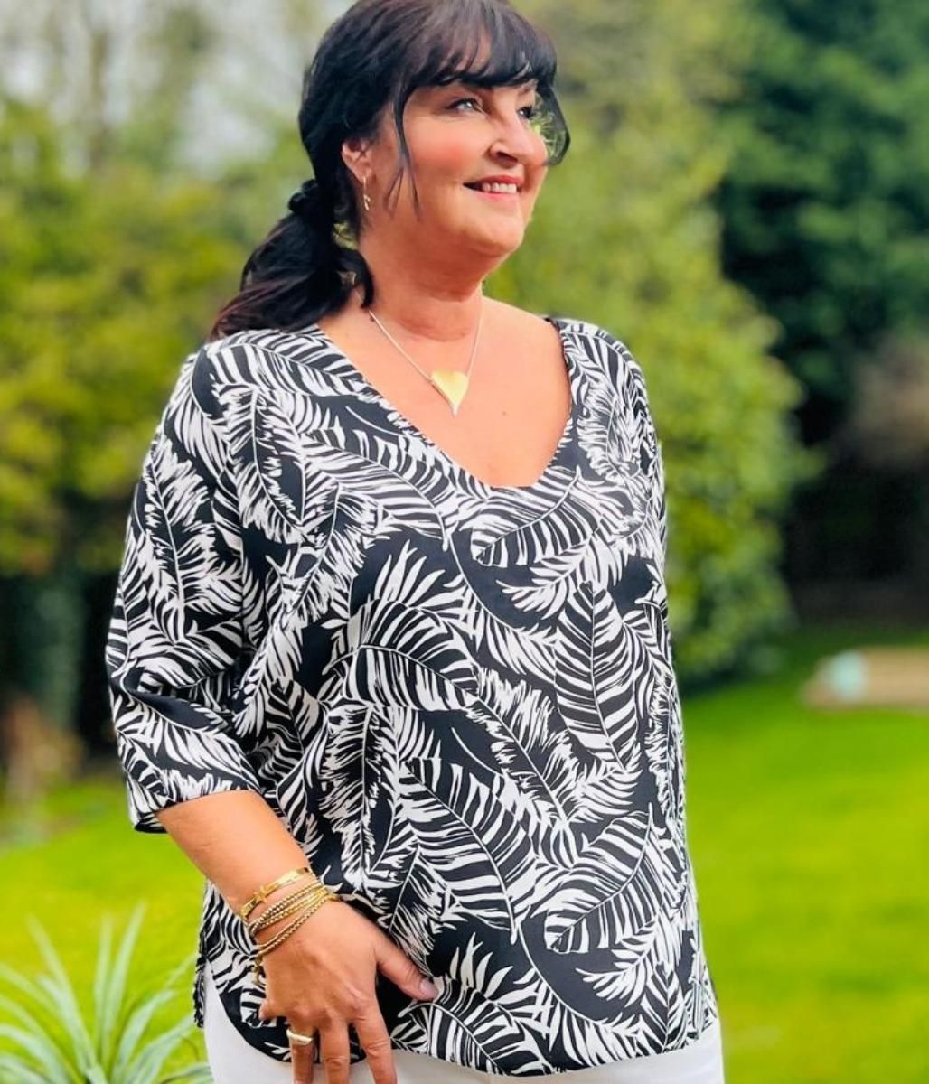Add a statement print to your seasonal wardrobe with this monochrome leaf top. Cut to a relaxed tunic shape, this style can be worn with ease at home or on holiday. It has a flattering v neck and comfy 3/4 sleeves as well as side seam splits. We love this paired with cropped trousers!