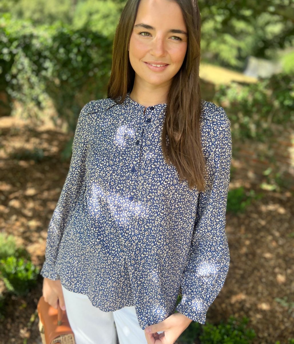 Featuring a charming ditsy print and delicate frill details on the shoulders and cuffs this popover blouse is such a lovely addition to your wardrobe. The long sleeves and button placket offer a polished look, while the lightweight fabric ensures comfort throughout the day. Perfect for adding a feminine touch to both casual and office outfits.