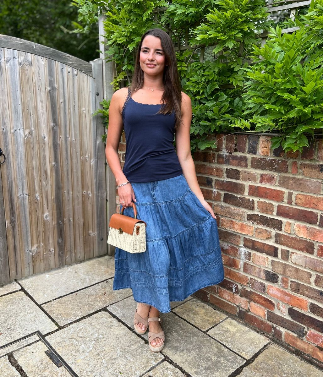 Crafted from a cotton-rich fabric with added stretch, this cami top offers a comfortable, flexible fit that moves with you. Delicate lace trims add a subtle feminine detail, making it perfect for layering or wearing on its own for a chic, effortless look.