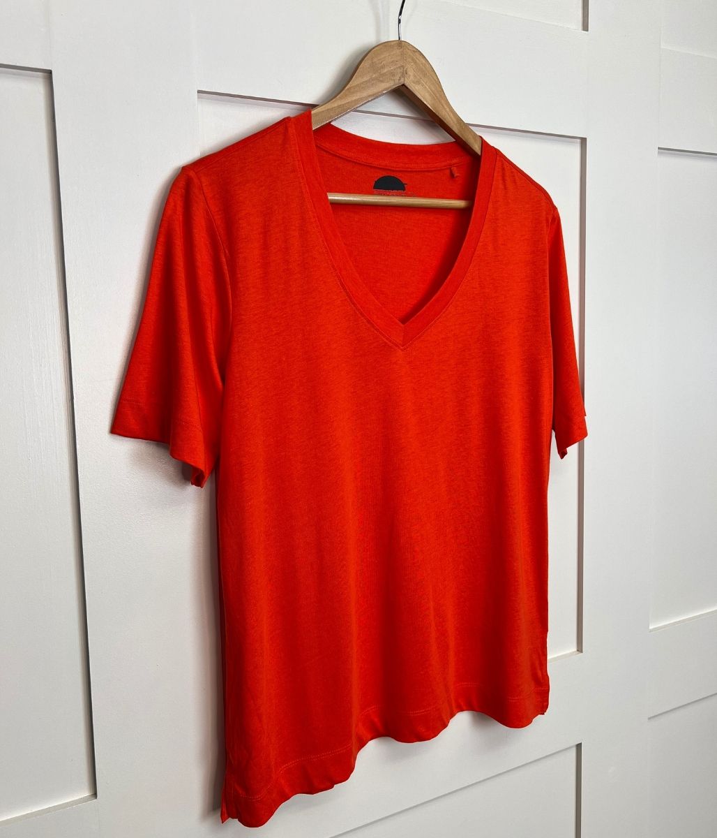 Orange Cotton Modal Slouch V-Neck T-Shirt