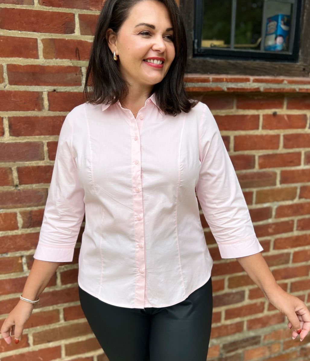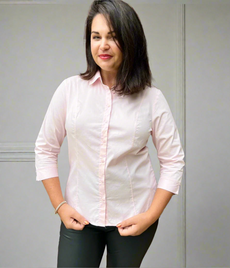 Update your collection of smart staples with this long-sleeved cotton-rich shirt. Cut to a flattering fitted shape, with added stretch so you can move comfortably. Classic tailored details include a button-through fastening and a crisp collared neck