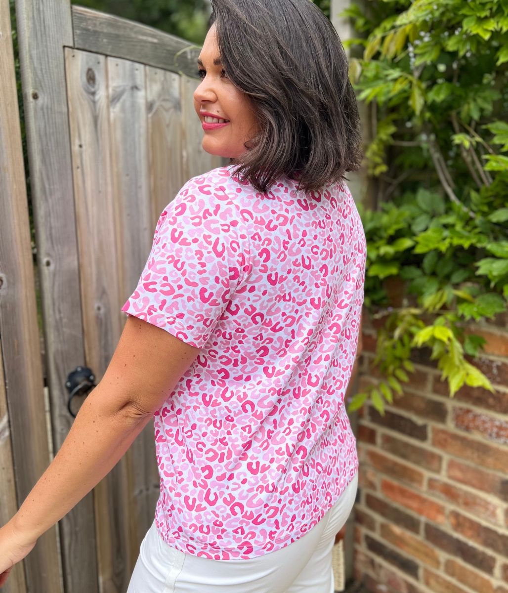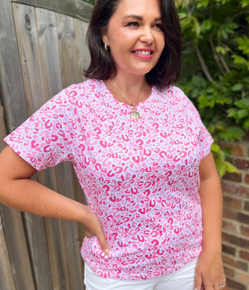 Pink Animal Print Straight Fit Cotton Tee