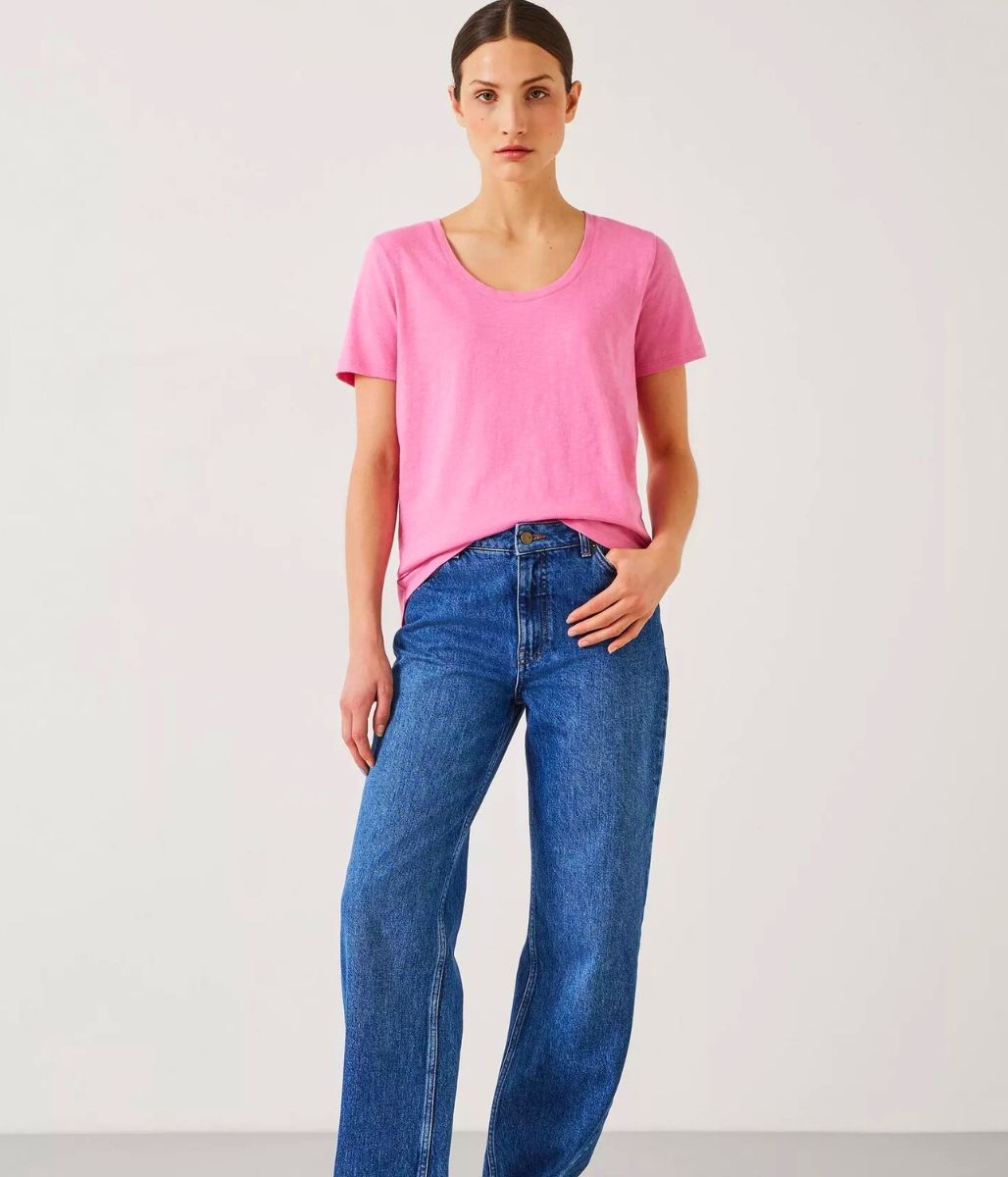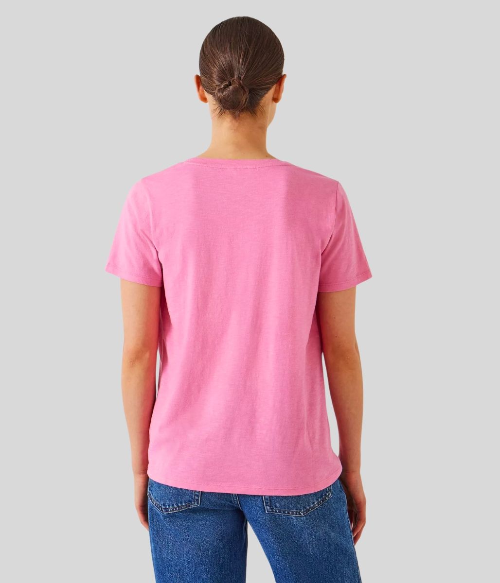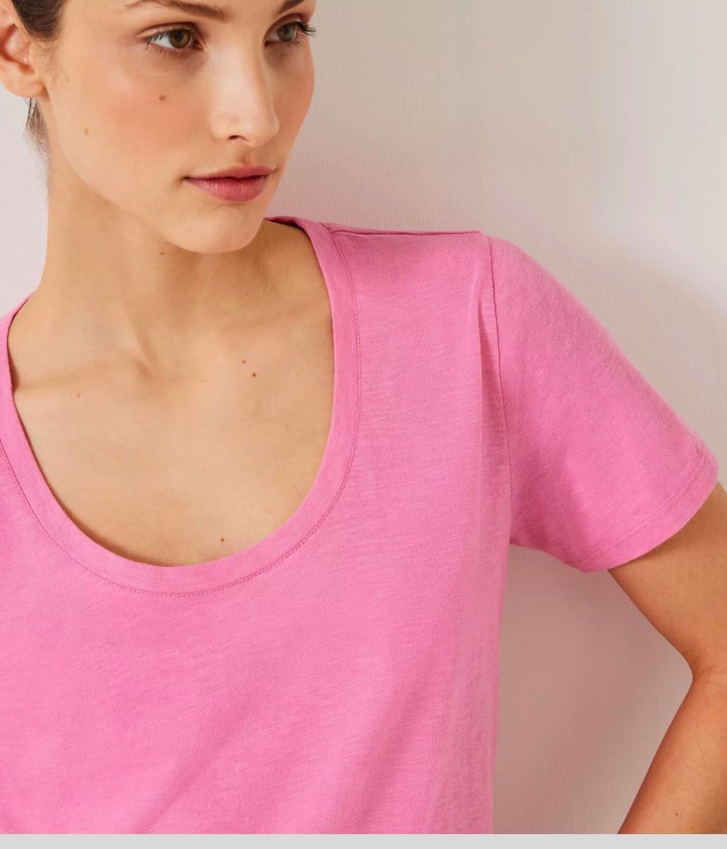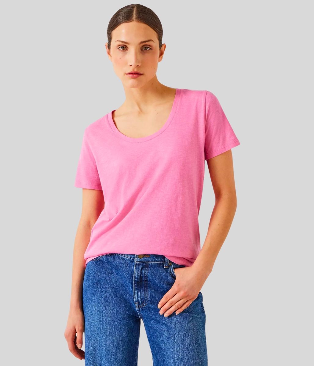 Pink Hari Cotton Slub Scoop Neck T-Shirt