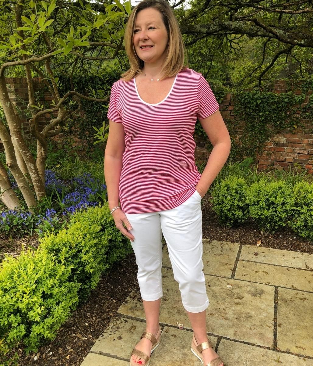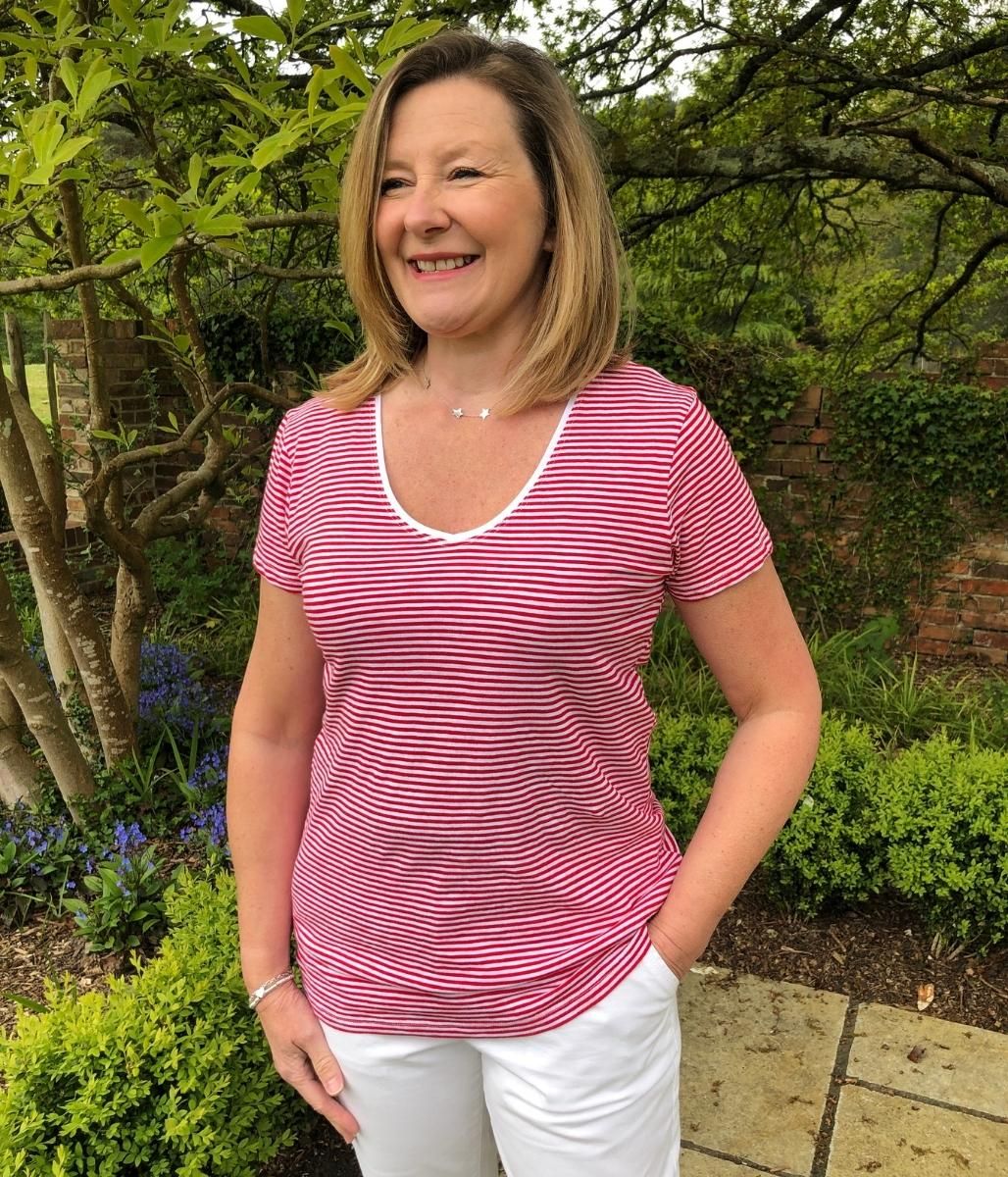 Red Fine Stripe Cotton Slub Tee