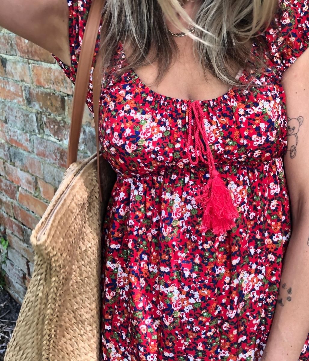 Turn heads in this floral scoop neck dress, offering a unique blend of style and comfort. Featuring an elasticated neckline with tassel tie and beautiful floral pattern, this midi dress transcends fashion norms with its tie back detail and under the bust seam.
