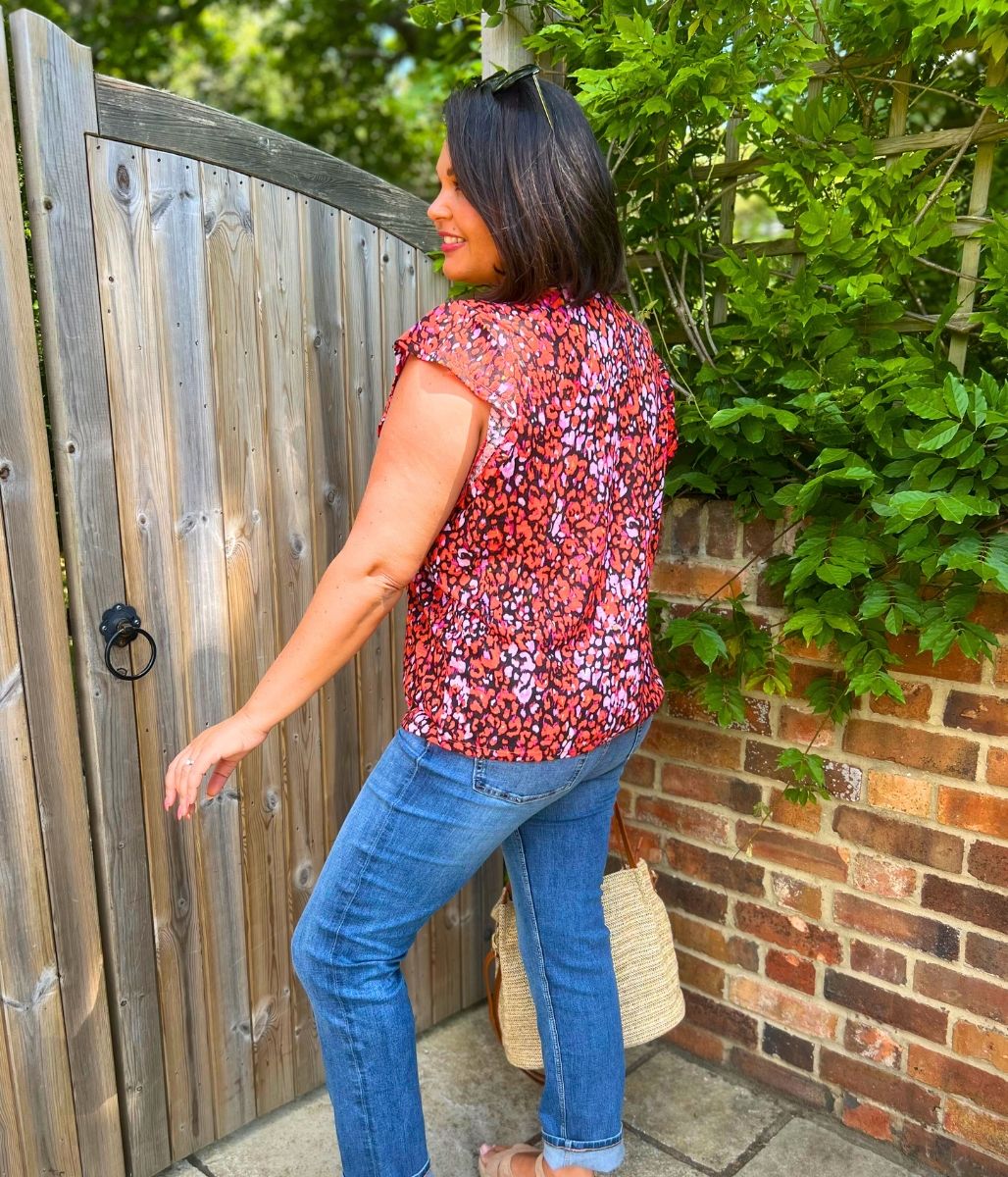 Add a pop of colour with this pretty summer floral top. Lovely to team with shorts, jeans or chinos. Lightweight jersey stretch fabric.