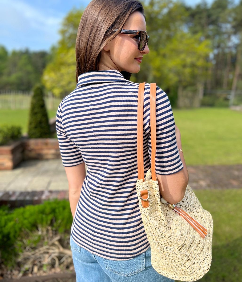 This stunning shirt features a classic collar and V-neck button front, made from a comfortable jersey rib fabric. Effortlessly elevate your style and turn heads with this must-have piece.
