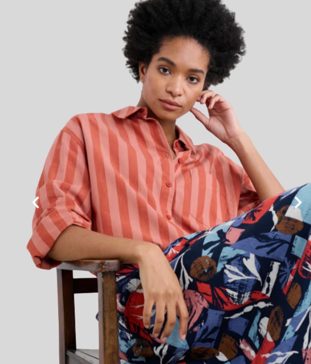 Ex Seasalt Sea Path Oversized Striped Poplin Shirt