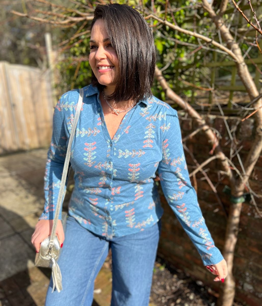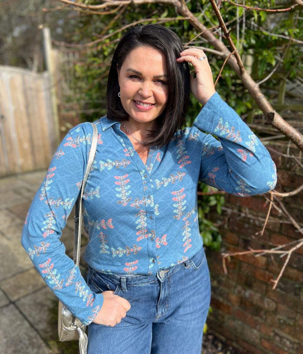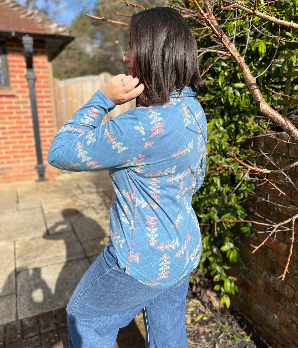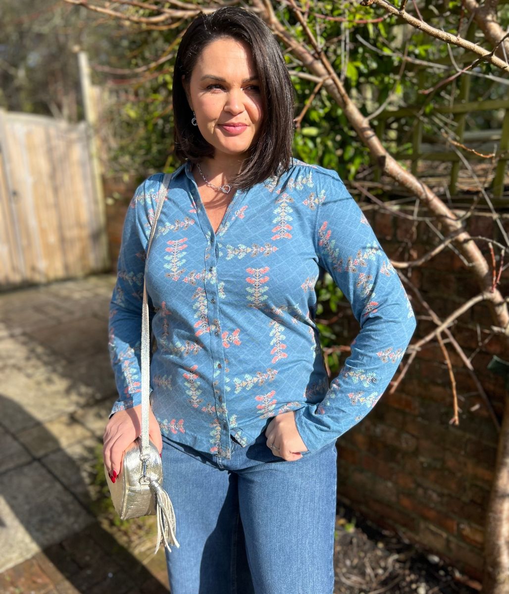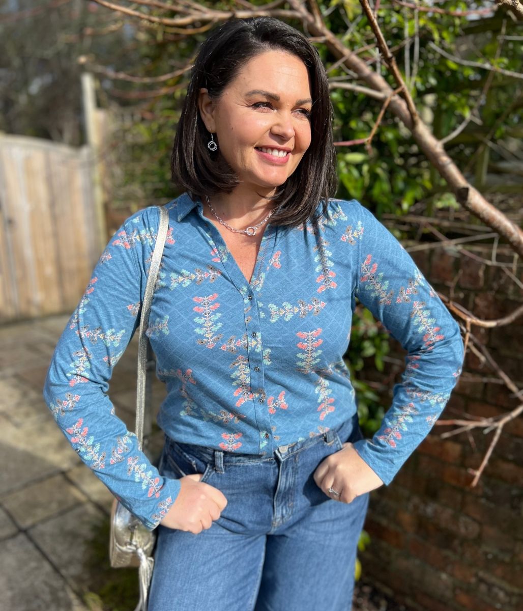 Made from organic-cotton jersey, this classic wardrobe essential features long sleeves, a button front, and a v neck. Perfect for everyday wear, pair it with anything from jeans to skirts for a versatile and stylish look!