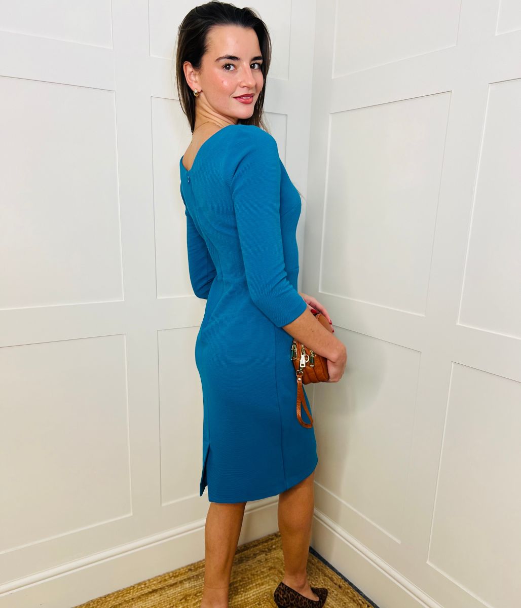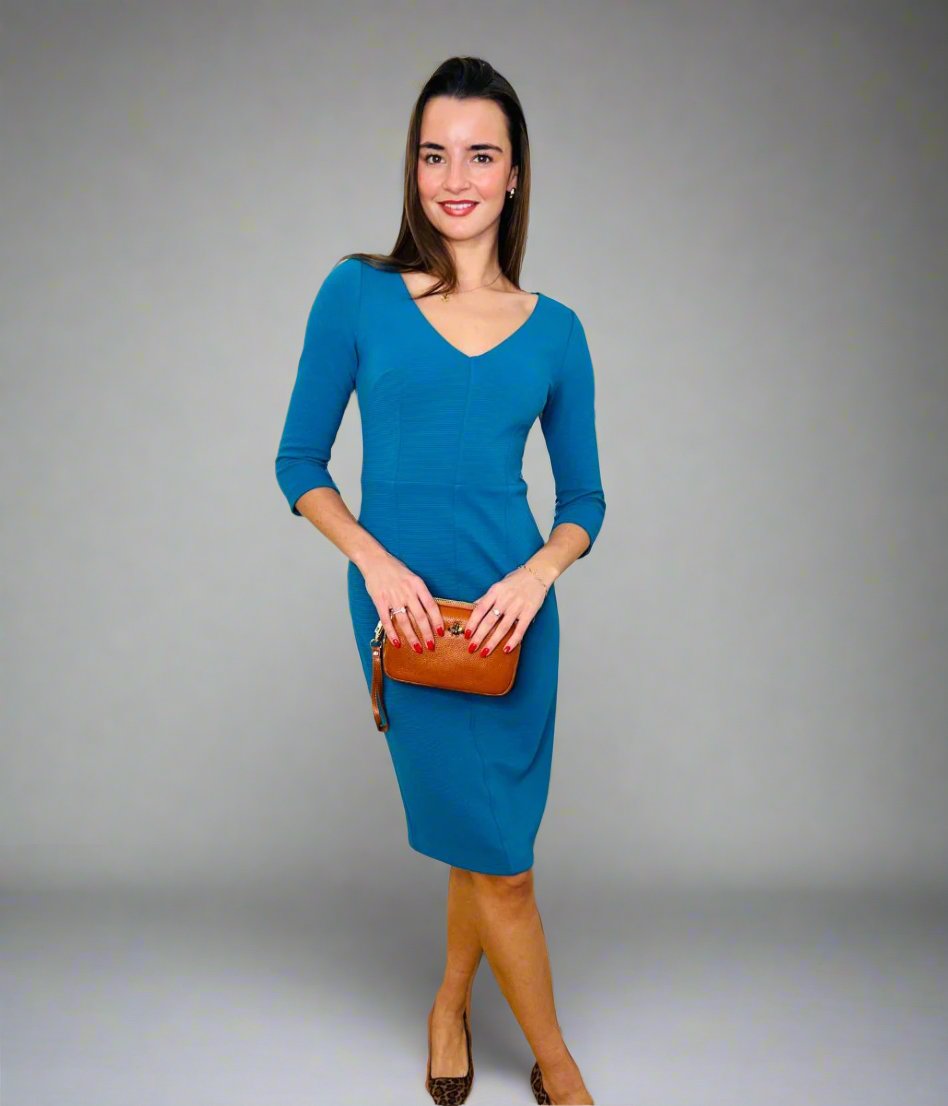 Achieve effortless style with this ribbed v neck dress. Its fabric blend is ultra-soft and comfortable, while the classic v-neckline and 3/4 sleeves make it both elegant and timeless. Perfect for any occasion, you'll look and feel your best in this must-have fashion staple!