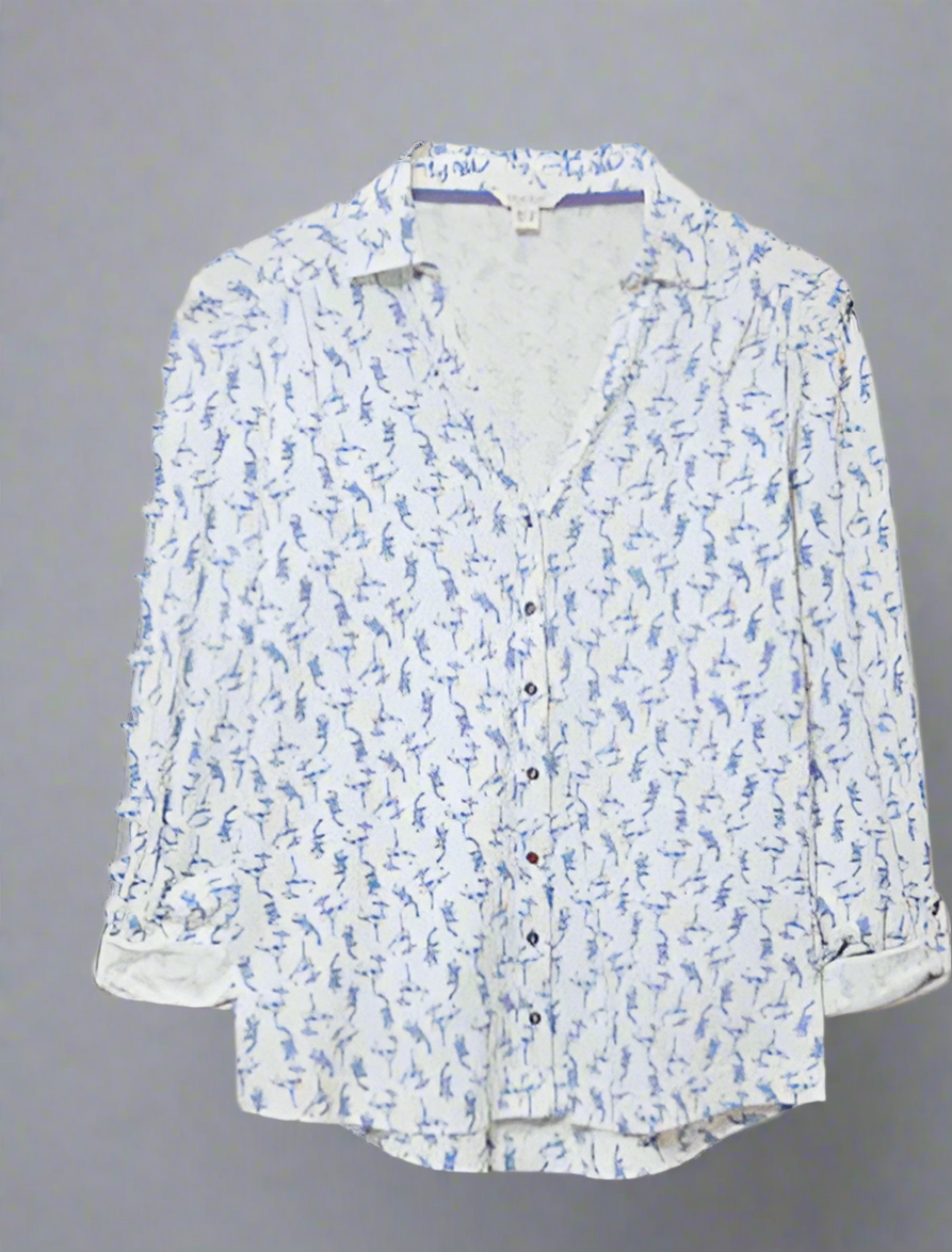 A stylish printed jersey shirt. So comfy you'll probably end up sleeping in it (although, it's better if you don't). This is a regular fit with a collared neckline and long sleeves. Soft cotton with a button front and flattering v neck.