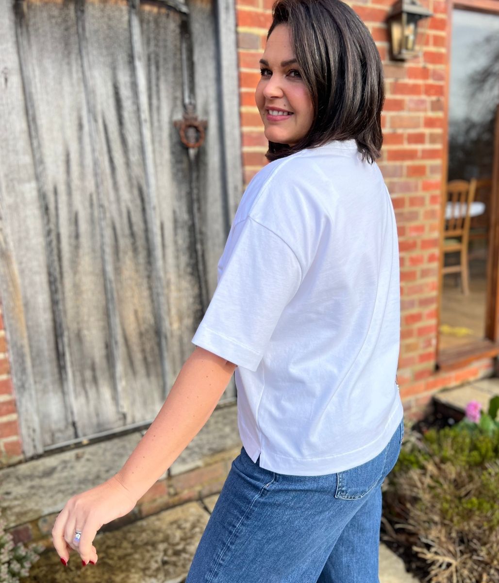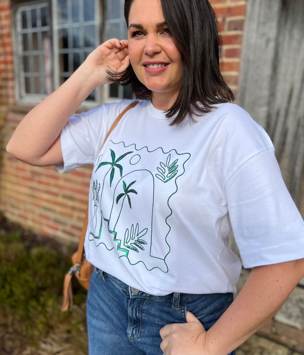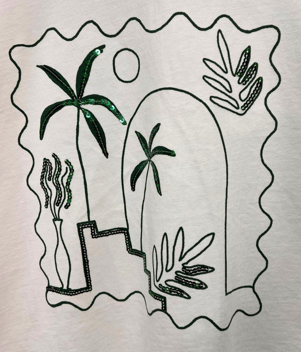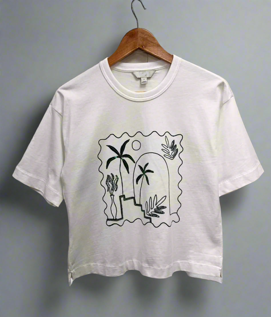 This boxy t-shirt is made from pure heavyweight cotton for a luxurious feel. It's cut in an oversized fit, with short sleeves and a crew neckline. The palm print is picked out in sequins adding a statement touch.
