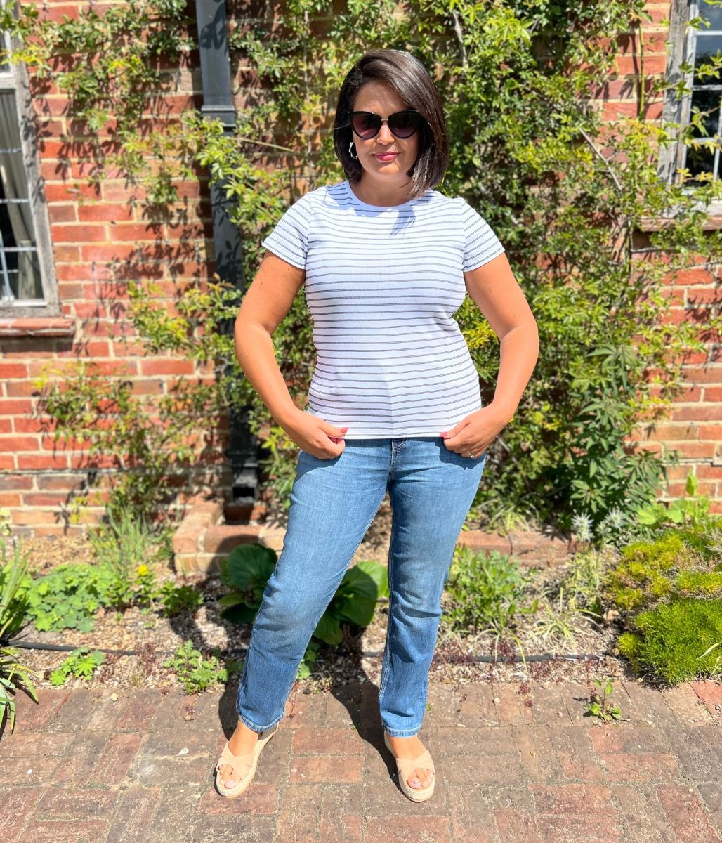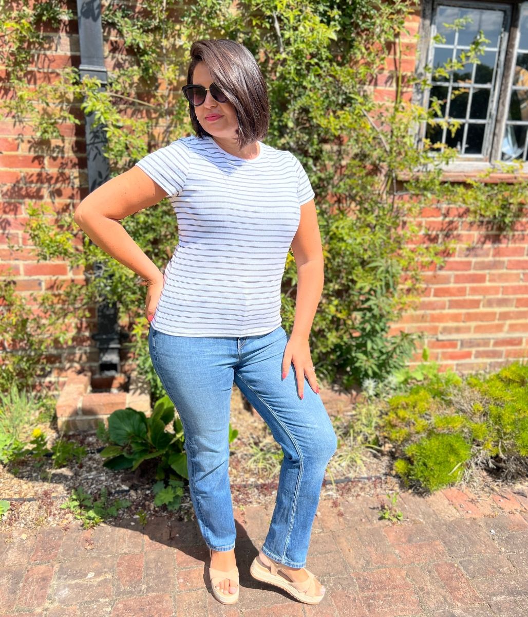 This cotton-rich ribbed t-shirt features a timeless striped design. It's cut in a flattering slim fit, with added stretch for comfort. Complete with a neat crew neckline and comfy short sleeves.