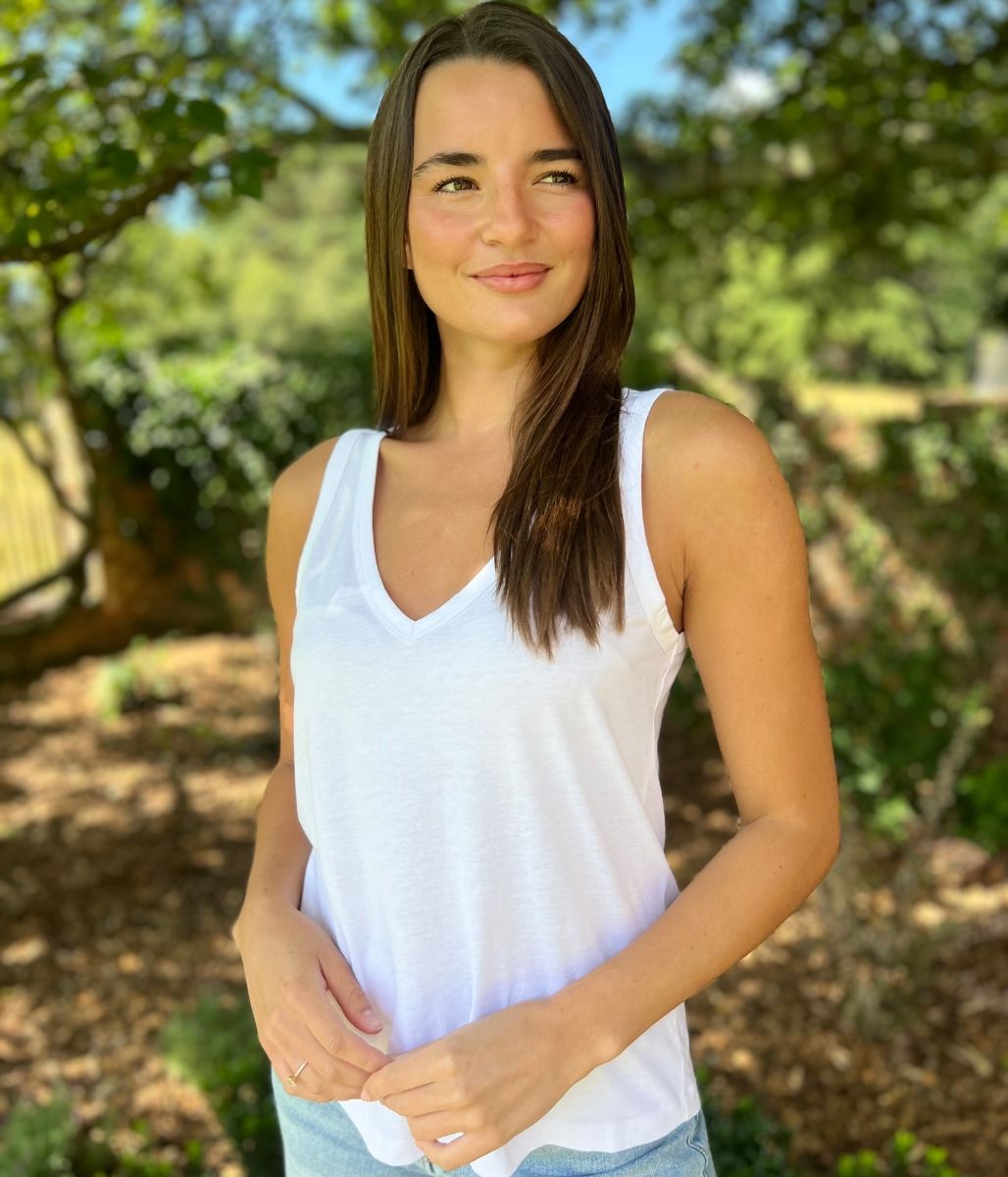 This slouch V neck vest is crafted from a soft handle cotton modal blend, creating a flattering draped shape. The lined v-neck adds premium detailing to the overall look. Ultra soft and comfortable, this will be your new summer essential.