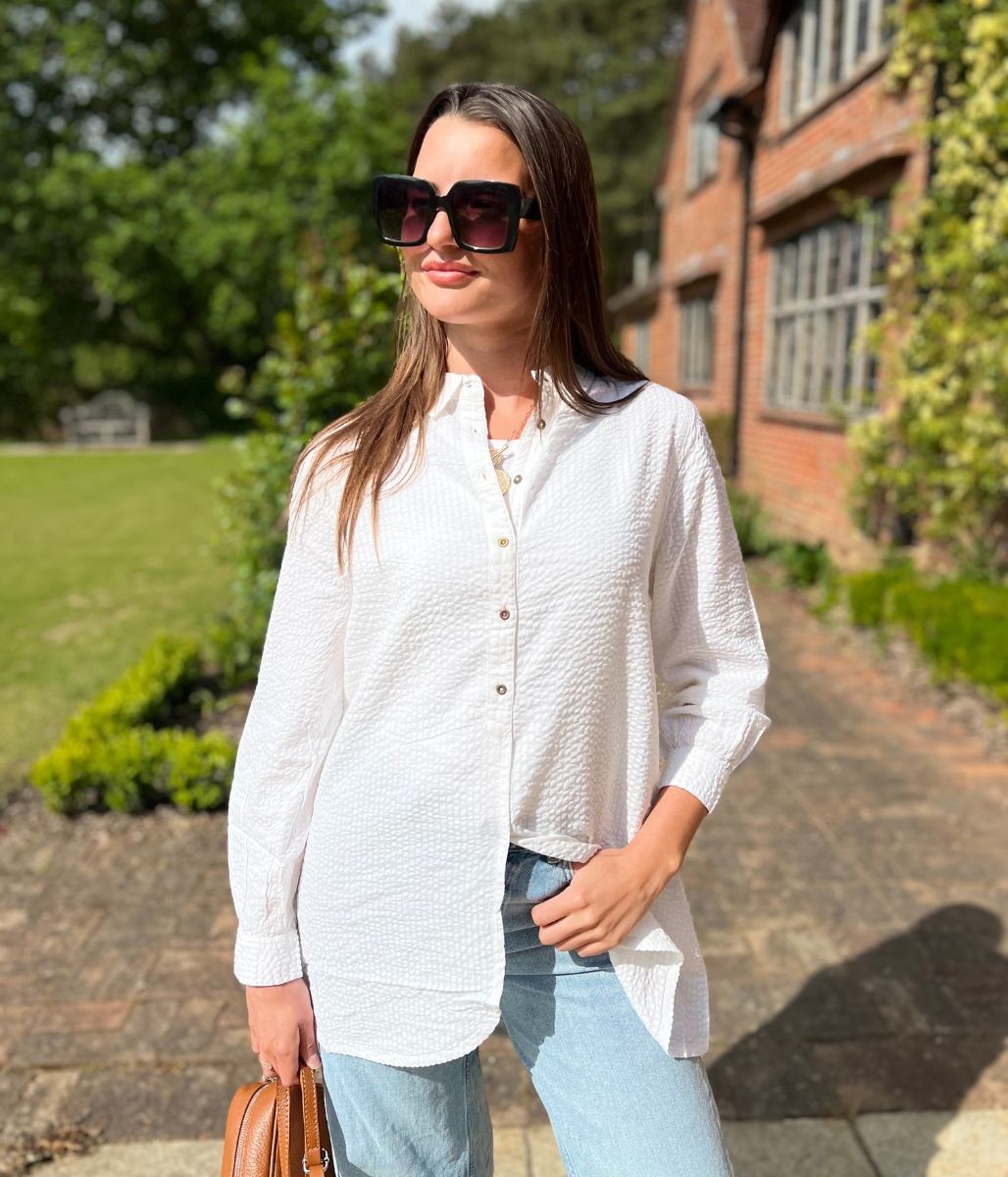 White 'Violet' Longline Tunic Style Shirt
