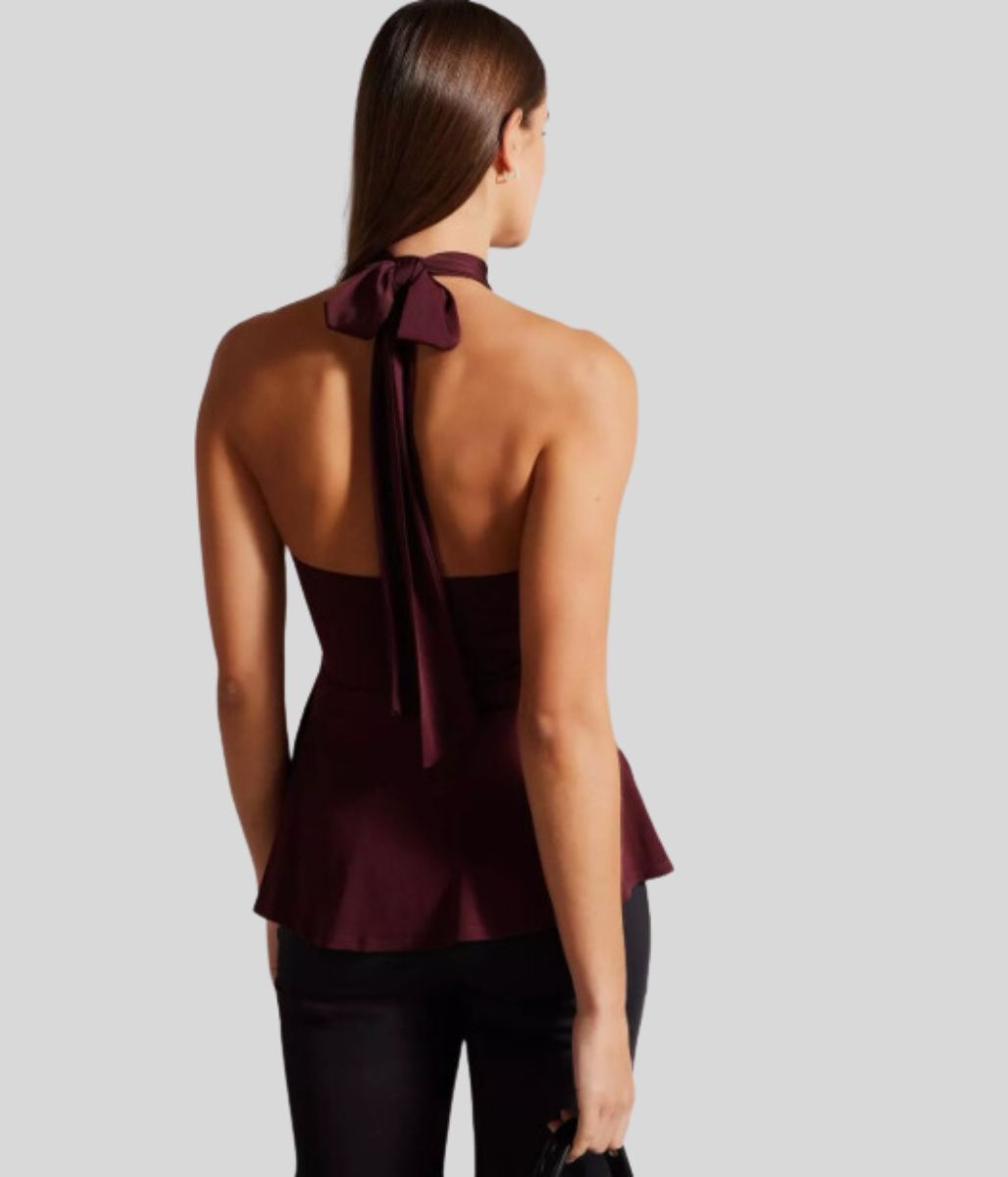 Made from a luxury stretch fabric, this chic top features a flattering halter neck fastening and twisted waist that highlights your figure. Perfect for any occasion, this top has a peplum silhouette that will have you feeling confident and stylish.